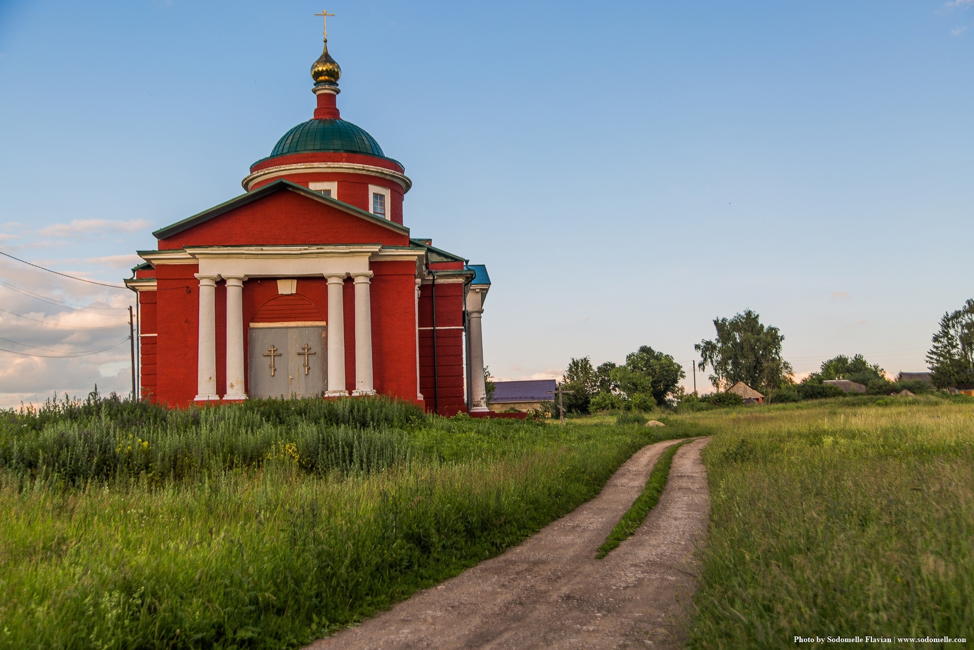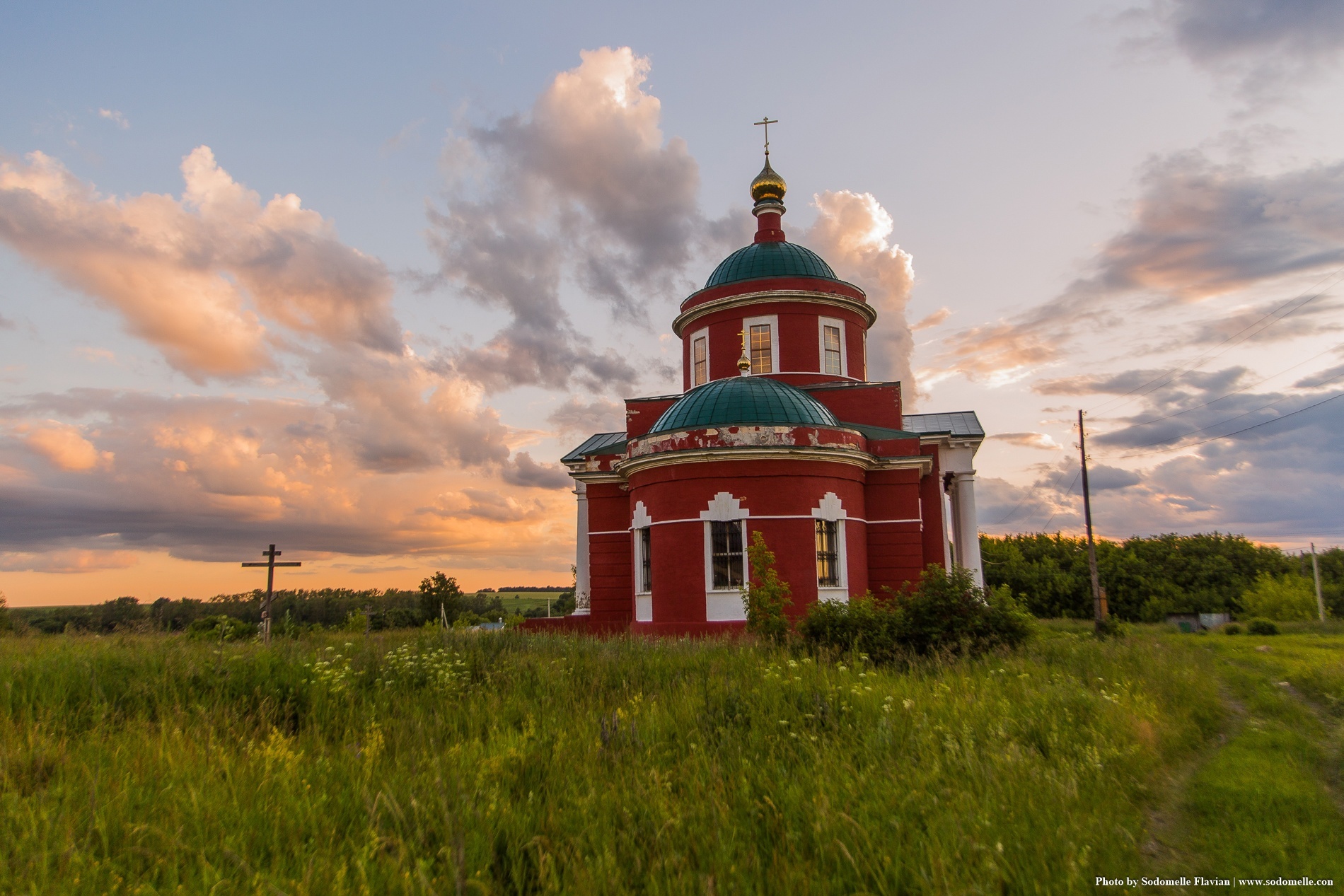 Церковь имеет трехъярусную колокольню, которая расположена справа от входа. Верхний ярус колокольни, который несёт главный купол, украшен пилястрами и фризом. Над главным куполом расположена малая главка.