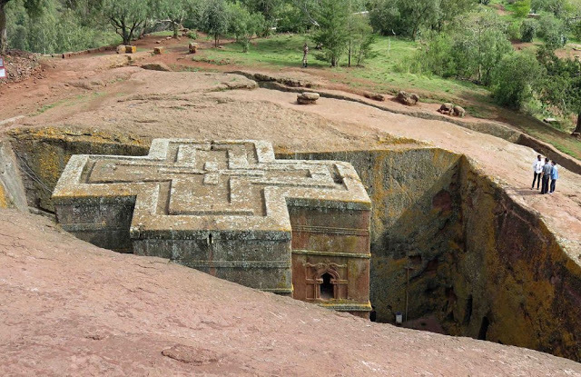 Необычная церковь расположена в Лалибеле, городе Эфиопии. Первоначально она называлась Лалибела в честь короля Эфиопии а позже православного святого (в Эфиопии православная церковь). Затем ее переименовали в Церковь Святого Георгия.