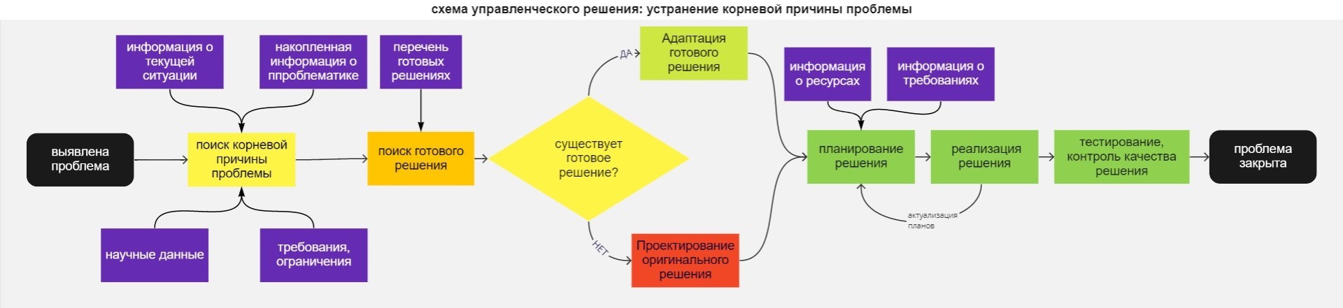Рассмотрим упрощённую схему одного из наиболее сложных типов управленческого решения: устранение проблемы.