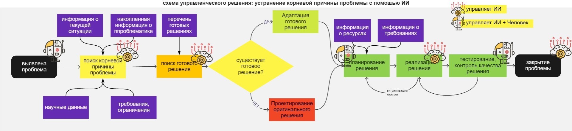 Участие человека на этапе планирования необходимо, в связи с тем, что планирование будущего будет включать в себя разделы развития сотрудников, управления их психологическим состоянием — это нерешаемые для ИИ задачи.