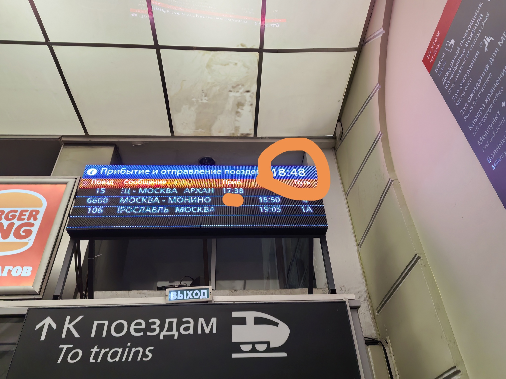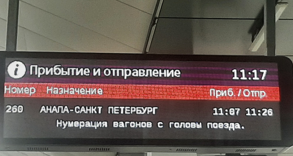 Иду на выход. Там на табло тоже нет времени прибытия. Только время по расписанию.