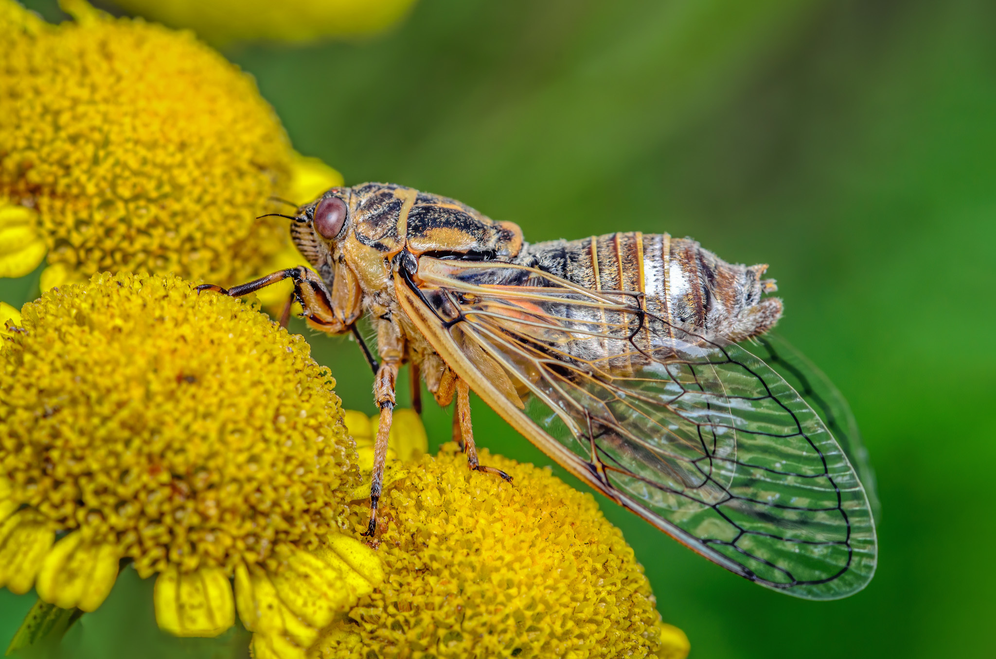 Еще один вид цикад, найденный уже в голой степи. Cicadatra hyalina. Этому самцу было немного наплевать на камеру, поэтому удалось снять в момент пения. Хотя перед этим довольно бодро улетал с одного цветка на другой.