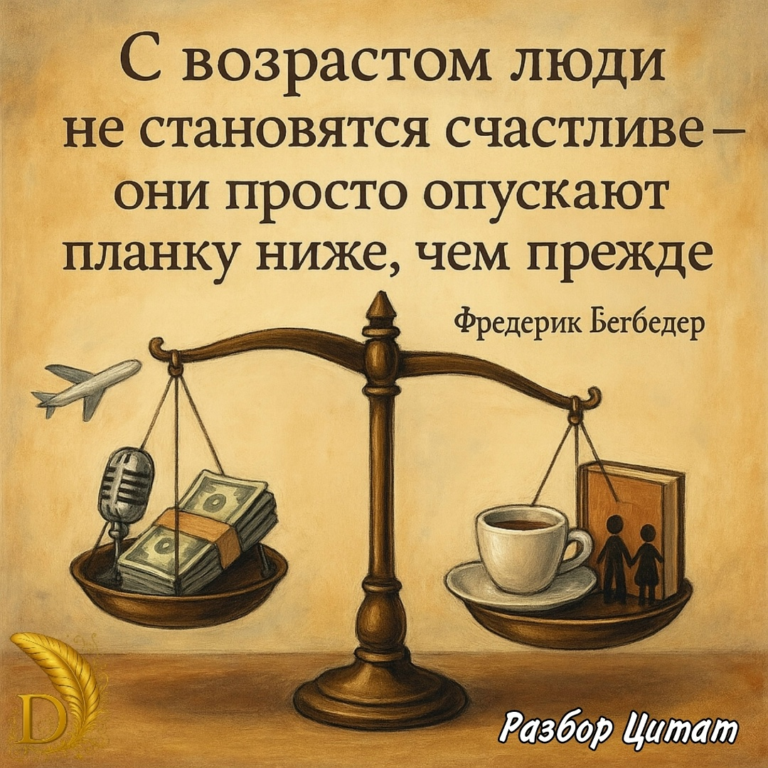 ✨ «С возрастом люди не становятся счастливее — они просто опускают планку ниже, чем прежде.» 📖 Фредерик Бегбедер