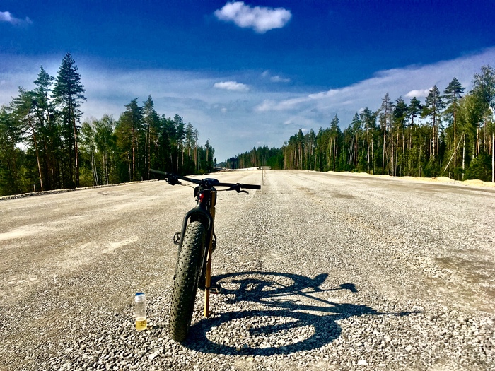 В некоторых местах пока ещё не уложен чистовой асфальт, но крошка на геотекстиле тоже даёт отличный накат.