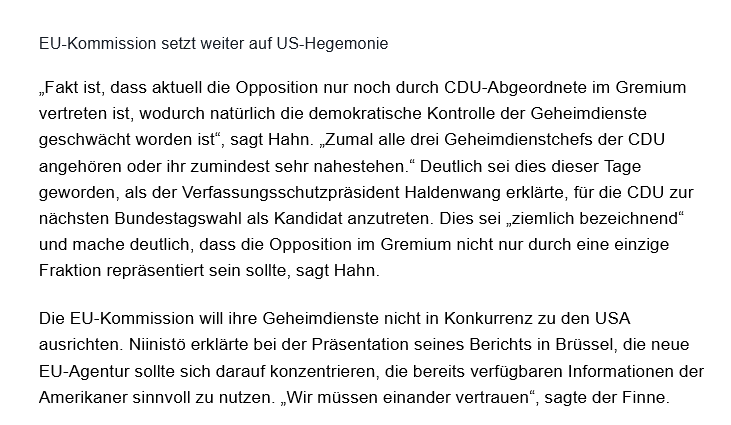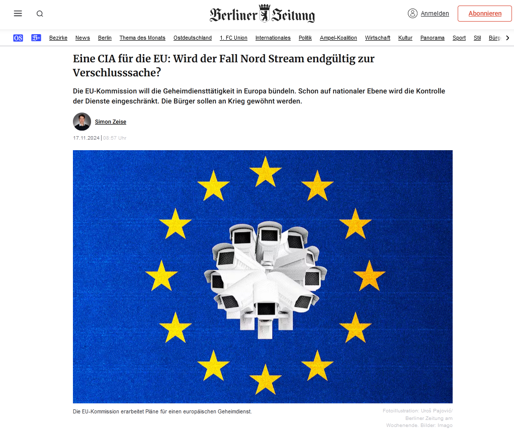 Комиссия ЕС хочет объединить разведывательную деятельность в Европе. Контроль над службами уже ограничивается на национальном уровне. Граждане должны привыкнуть к войне.
