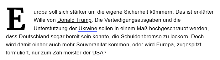 Европа должна больше заботиться о своей безопасности. Таково заявленное намерение Дональда Трампа. Расходы на оборону и поддержку Украины должны быть увеличены настолько, что Германия, возможно, даже будет готова ослабить долговой тормоз. Но будет ли это также означать увеличение суверенитета или, говоря прямо, Европа просто станет казначеем США?