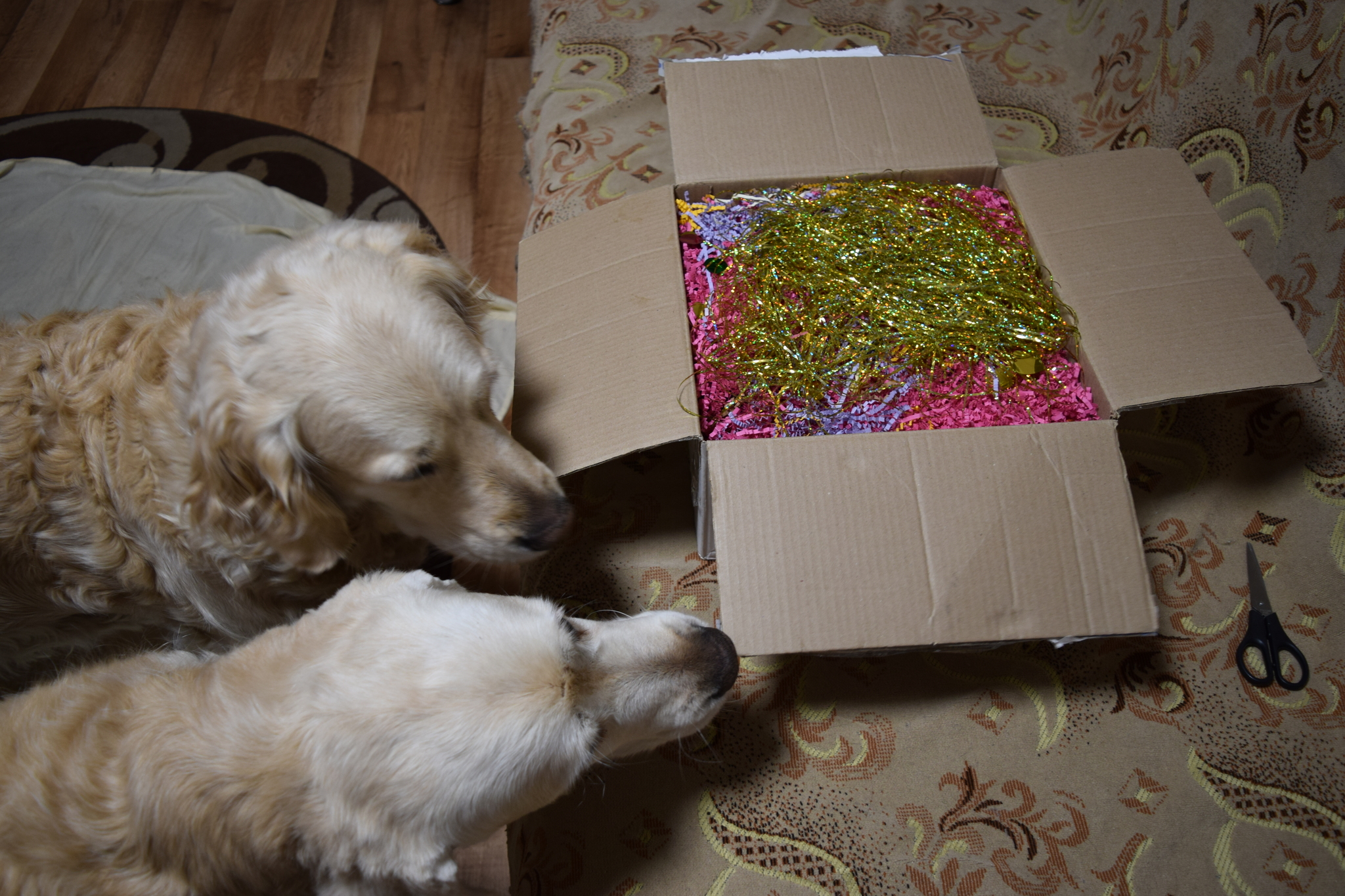 Когда я открыла коробку, то меня встретила вот такая красота! Опытные "вскрывальщицы" подарков сразу же засунули свои любопытные носы в коробку.