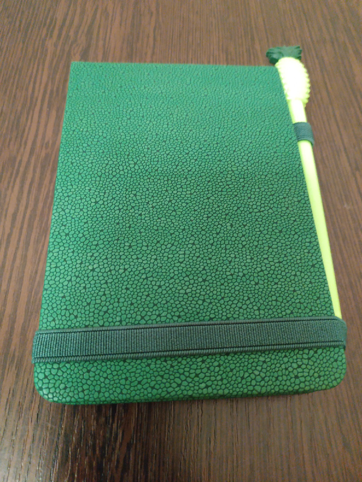 Прикольный зеленый блокнот, мне как раз был очень нужен, и ручка в виде ананаса;
