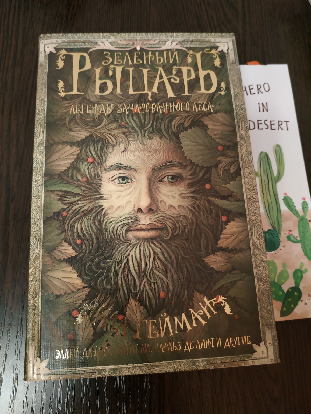 В самом низу лежала книга: "Зеленый рыцарь. Легенды зачарованного леса" и очень милая закладка с кактусами. О себе я писала что люблю книги и моя отправительница и это учла. Удивительное совпадение, что по проекту "Книговорот от АДМ" я получила книгу этого же автора, но с другими рассказами. Я с большим удовольствием прочитаю подаренную книгу!