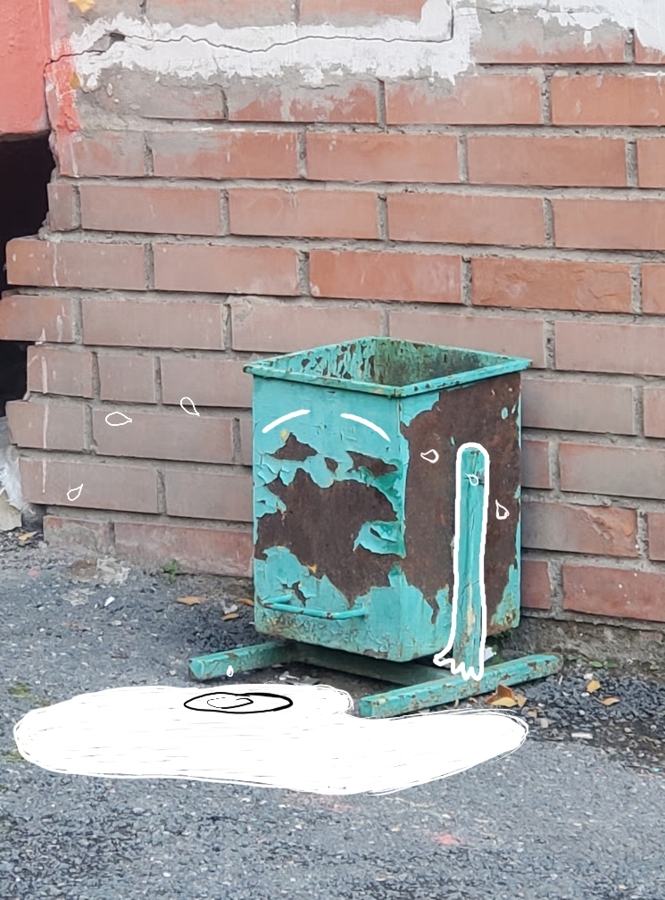 Наверное, когда ты старая облупившаяся мусорная урна , то можешь позволить себе взгрустнуть. Совсем капельку или нет
