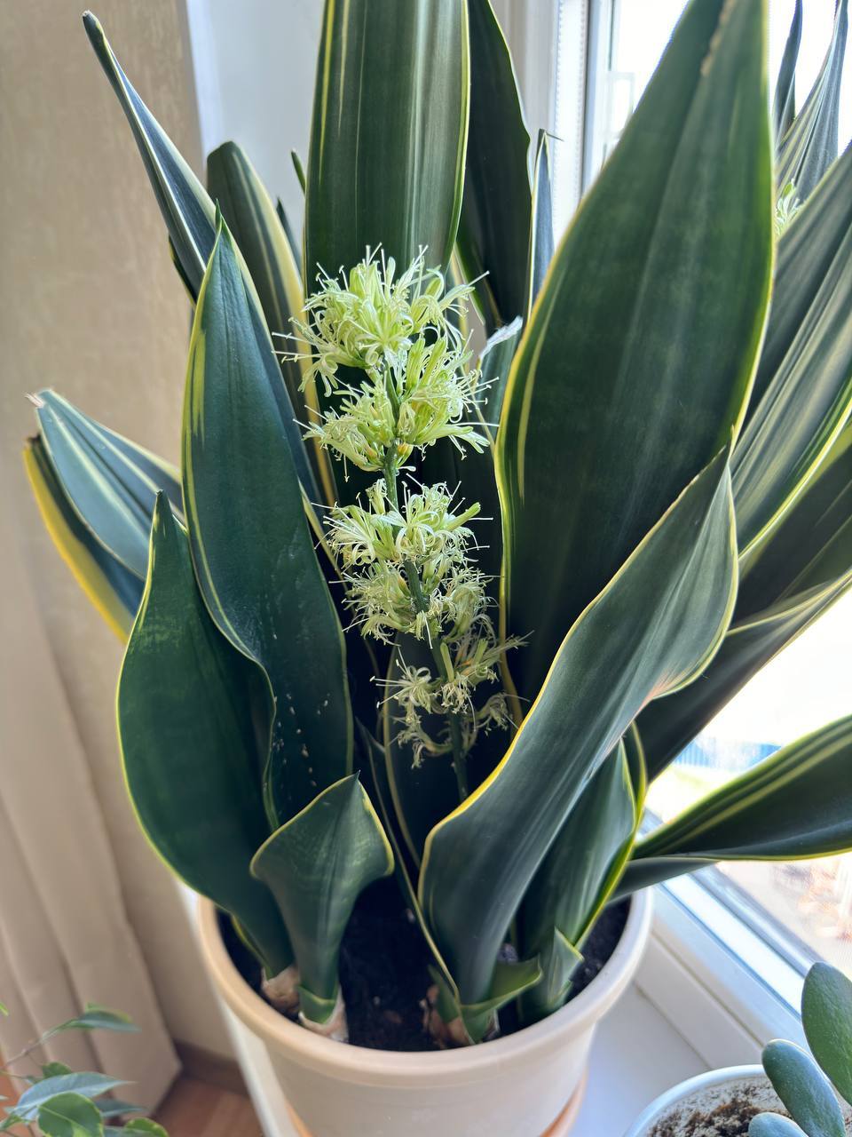 Да как у всех листы эти вверх торчат и не падают?! У меня всяких видов этот щучий хвост, листы новые прут стабильно, но разваливаются от корня, все подвязанные в охапку, иначе развешиваются как паук. Горшки и широкие и высокие и всякие пробовала, и землю подсыпала и подпорки втыкала, не держит лист прикорневая часть(((