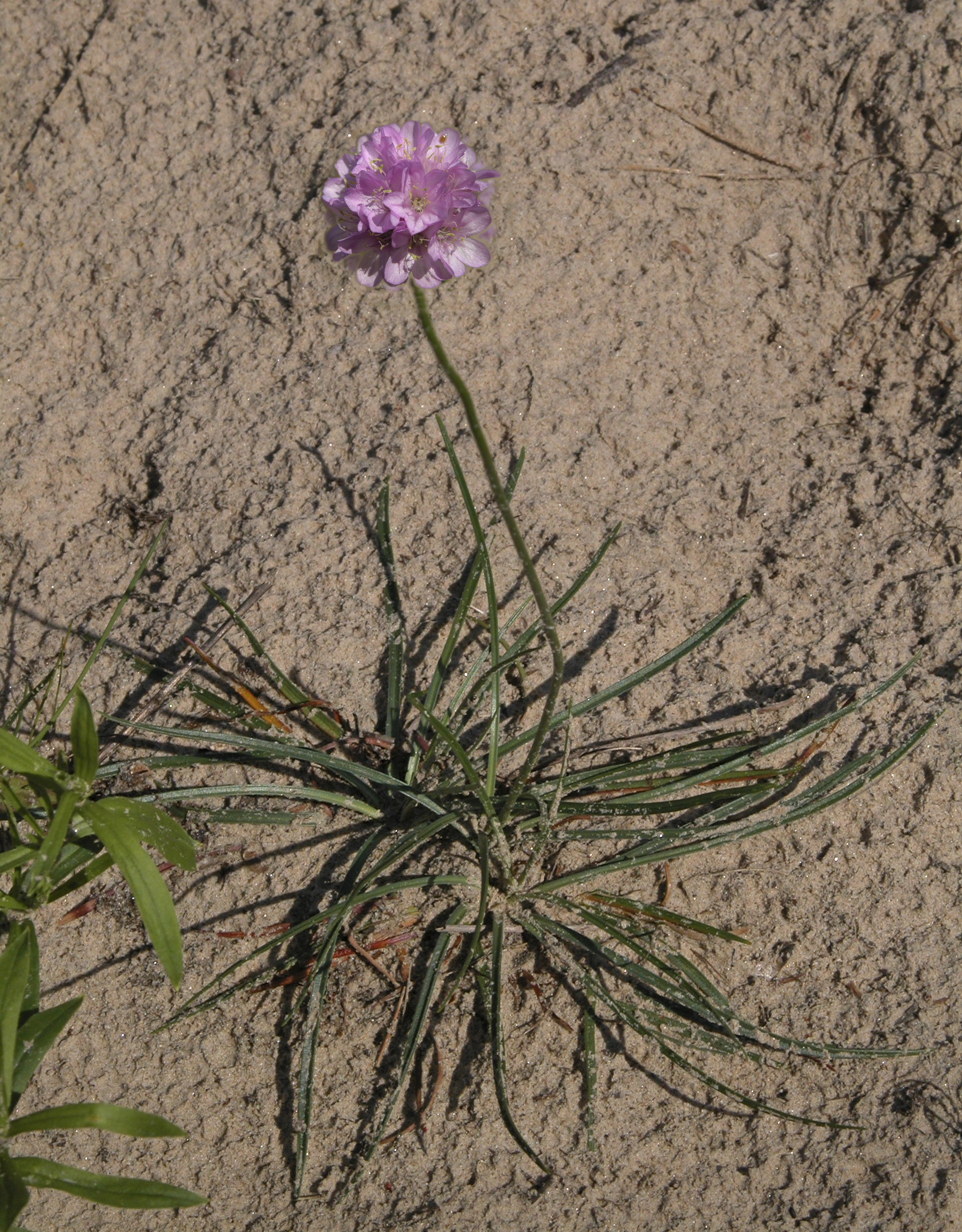 Армерия приморская (Armeria maritima) – невысокое многолетнее растение, образующее плотные дерновинки с узкими листьями и ярко-розовыми соцветиями. Каждый цветок имеет пять лепестков и пять желтых тычинок.