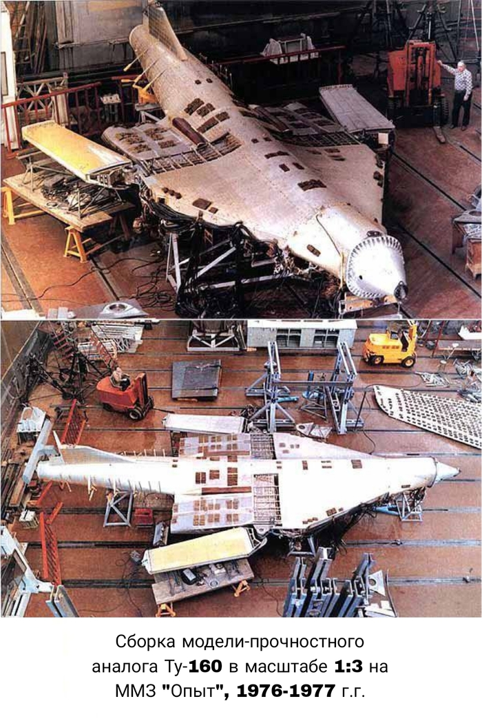 В конце 1977 г. был утвержден макет Ту-160, и в Москве при широкой кооперации с Казанью началась постройка трех прототипов. Первый из них, обозначенный «70-01», предназначался для летных испытаний, но не оснащался бортовым оборудованием в полном объеме. Самолет «70-02» служил для статиспытаний, а «70-03» стал практически полным аналогом серийной машины.