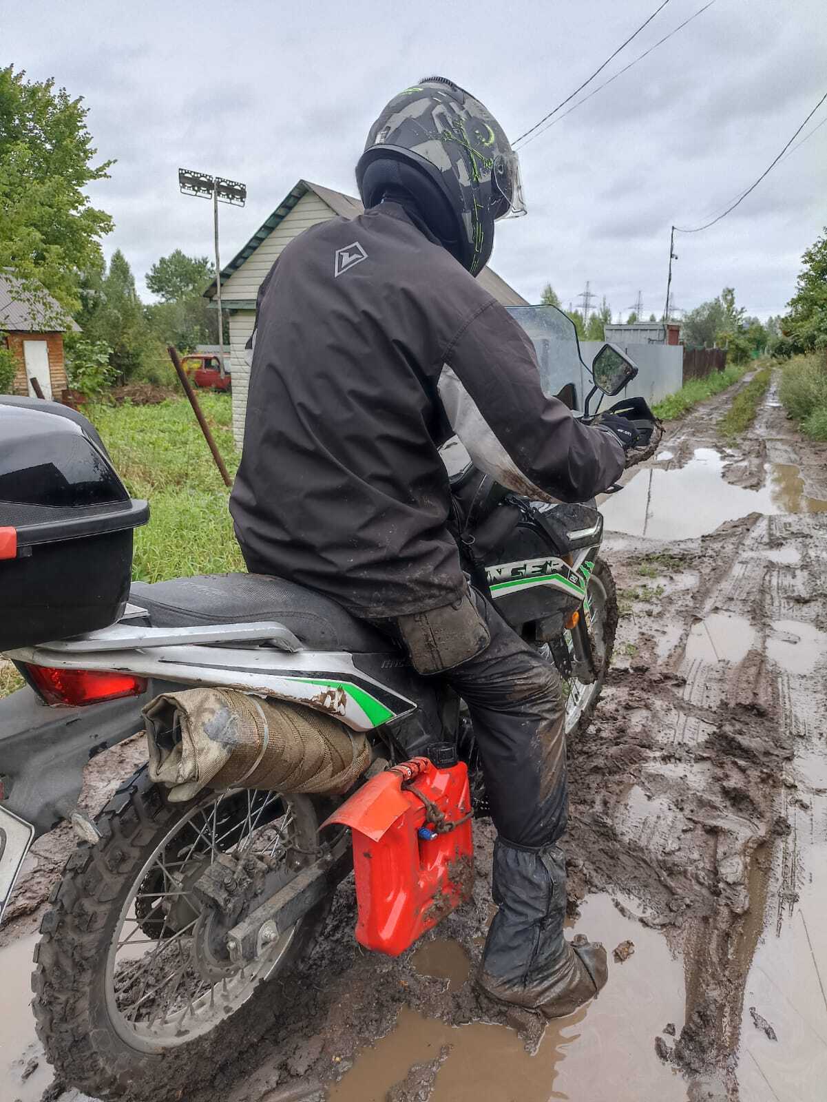 Во-первых, неудачно продумал крепление походных вещей к мотоциклу рюкзаков, палатки и прочего, что привело к потерям и тратам. Сперва протер боковую сумку из старого рюкзака об колесо, в результате сумку выкинул. Кроссовки Puma, лежавшие в рюкзаке, тоже выкинул - подошву в ноль стер. Потом палатка стала задевать выхлопную трубу. В итоге она расплавилась.