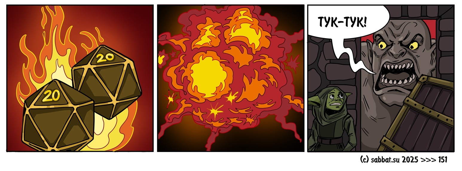 9 Denorst Ша.баш: Цитатник игр и игроков Юмор Тук-тук Серия Стрипы по цитатам Ша.баш 22 дня назад По мотивам: Полуорк - последователь вышибает дверь двумя критическими ударами. Персонаж:- Тук-тук... from sabbat.su [моё] Ролевые игры Цитаты Комиксы Юмор Игральные кости 4 1 Ещё 0