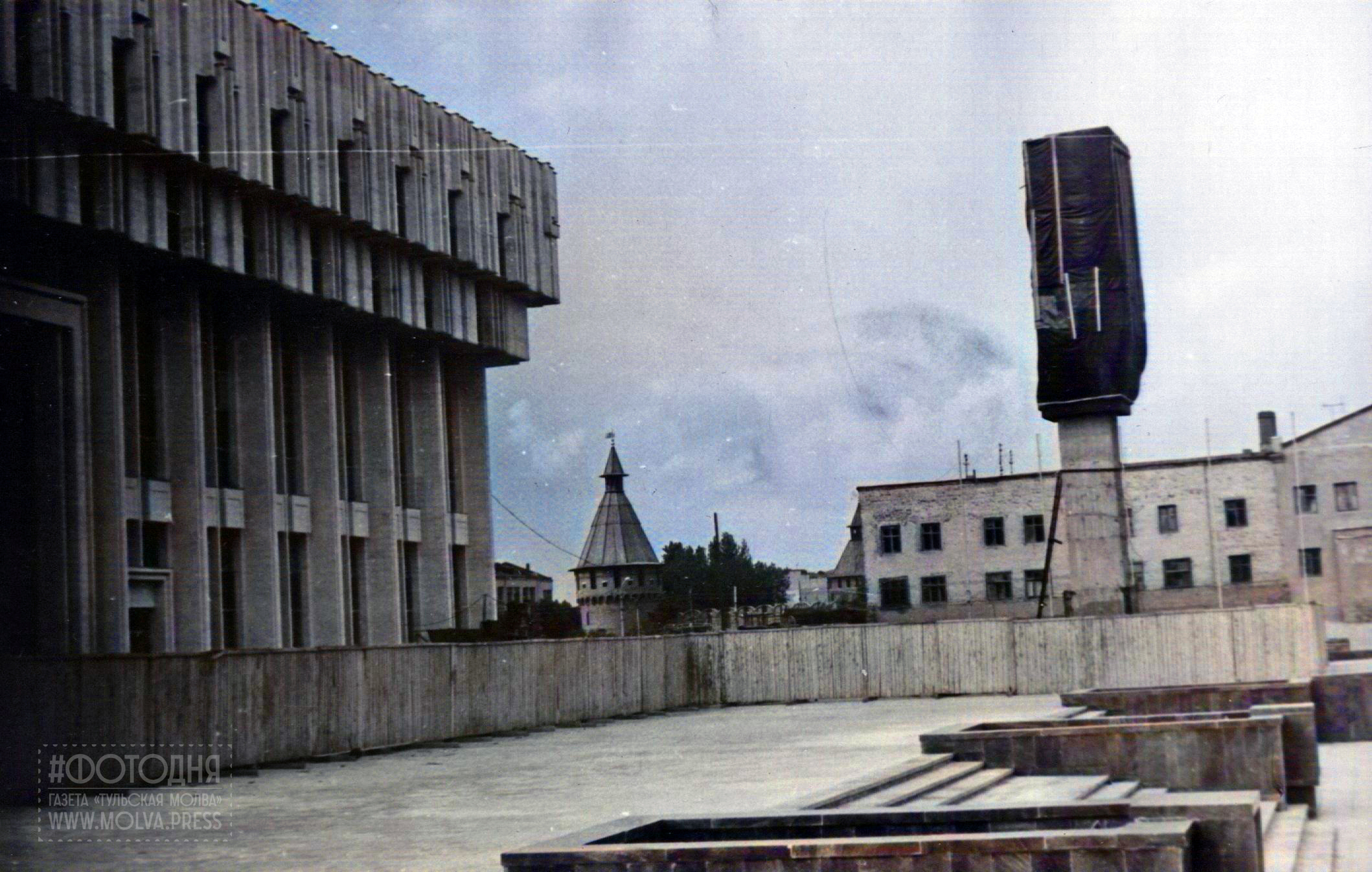 Тула. Возведение памятника В. И. Ленину у строящегося здания Дома Советов
