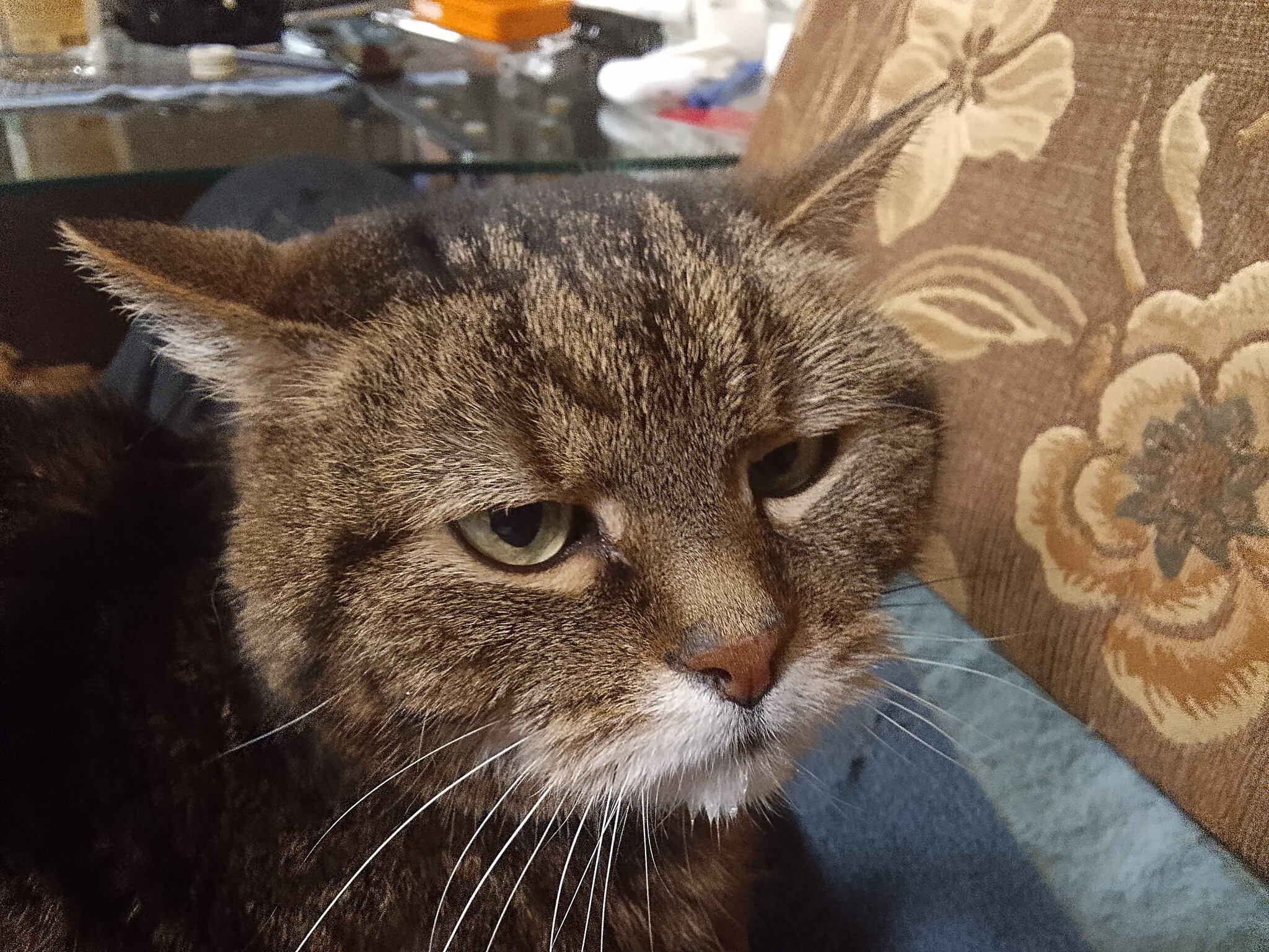 Это Тунгус. Мы его зовём Тунгусь, так он выглядит. Не знаю, отчего у него такое лицо грустное, как у одного мемного кота. То ли природа так распорядилась, то ли жил он не в благополучном доме. Я б тоже взгрустнул сильно вплоть до клинической депрессии. Жил он с другой кошкой, про неё потом расскажу. Детали придержу при себе, этого не стоит знать. Упомяну только, что его часто били ногами и кормили когда держатель проспится.