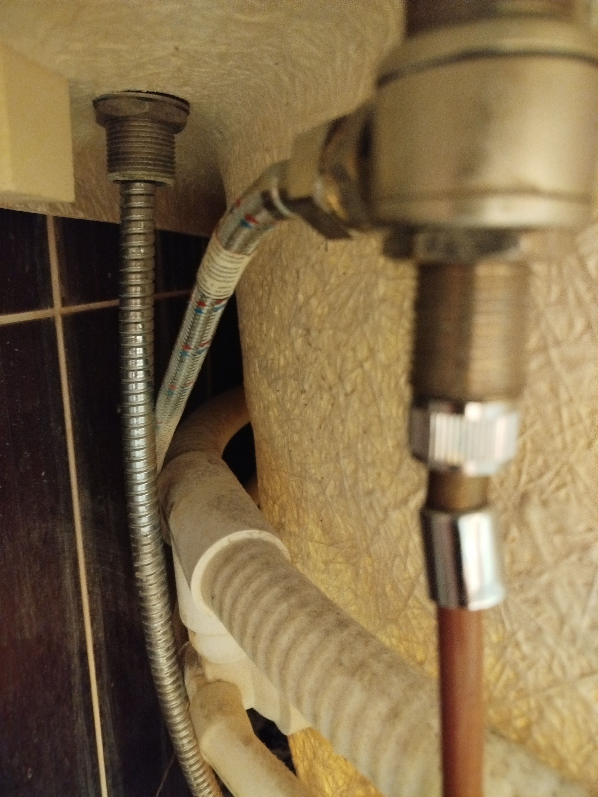 Утром обнаружила, что оторвалась металлическая оплётка шланга. Сгоняла в Леруа, взяла обычный стандартный шланг(у них, как оказалось, других диаметров нет), но он оказался больше, чем нужно и не лезет в отверстие на боковине ванны, будь оно не ладно. Оторвав экран, открутив шланг, сделав определённые замеры... Я осознала, что в гугле меня забанили и я ничегонепонимаю. На фото замерила гайку(шайбу?! 😅), в общем, замерила что-то, что как раз пролезет нижним концом в отверстие прячущее весь шланг под ванной. Помощь нужна в определении дюймов наверное, в общем вида этой шайбы, чтобы не опростоволоситься при заказе шланга и чтобы он наконец влез в это гребанное отверстие хоть каким-то концом.