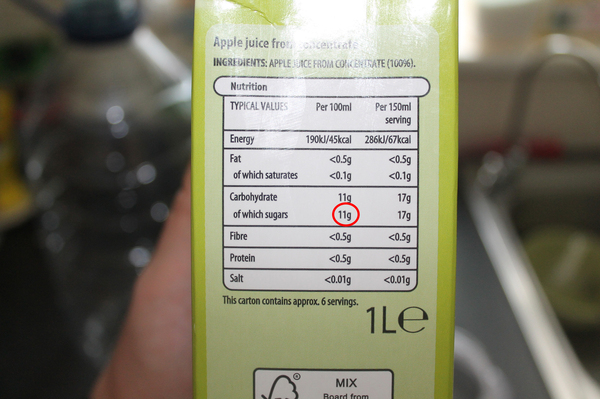Карбонизация Сидр за отсутствием пивной пенной шапки газируется значительно сильнее пива. По уровню карбонизации он будет равен 3.0 (лагер 2.3) Для этого в 4.5 - 5 литров сидра нам надо добавить 45-50 грамм сахара. Но мы же не варвары добавлять столовый сахар в чудо-сидр. Смотрим на состав сока, видим, что в нашем соке 11 грамм сахара на 100 мл. (у вас возможно своя цифра, корректируйте вычисления сами)