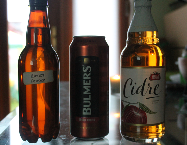 Решено было сравнить сидр с другими представителями напитка в продаже. У нас в Ирландии их много, но самые часто попадающиеся полусладкие Bulmers (в Англии Magners) и Stella Artois.