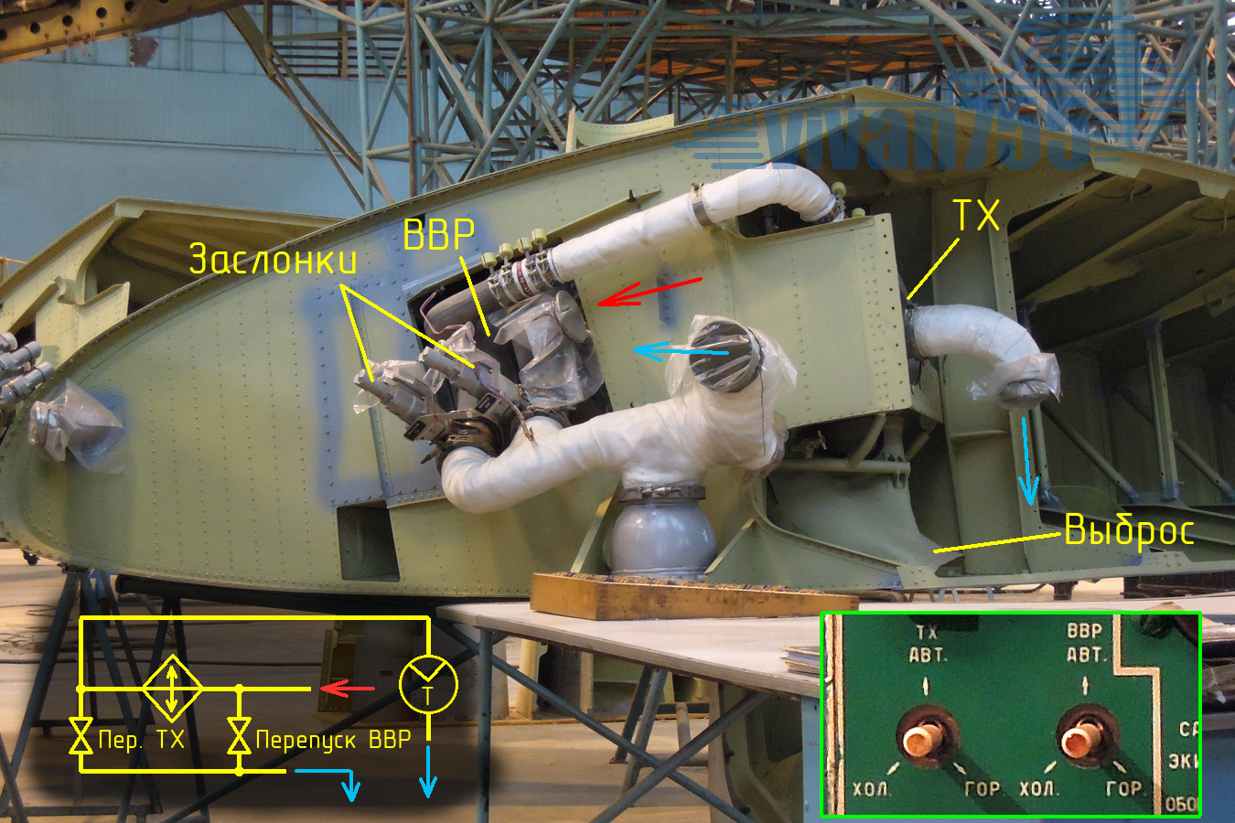 Но целиком про этот агрегат можно почитать в другой статье https://dzen.ru/a/aOy0uSmceAgQdx-T , метановая тема за рамками авиационной. На самолёте тот же принцип – воздух от двигателей охлаждается в ВВР, благо тот не имеет движущихся частей и весьма надёжен, а если не хватает ВВР – то в работу включается ТХ. В промышленности принято называть эти машины турбодетандерами – это международное название, в советской авиации они зовутся турбохолодильниками.