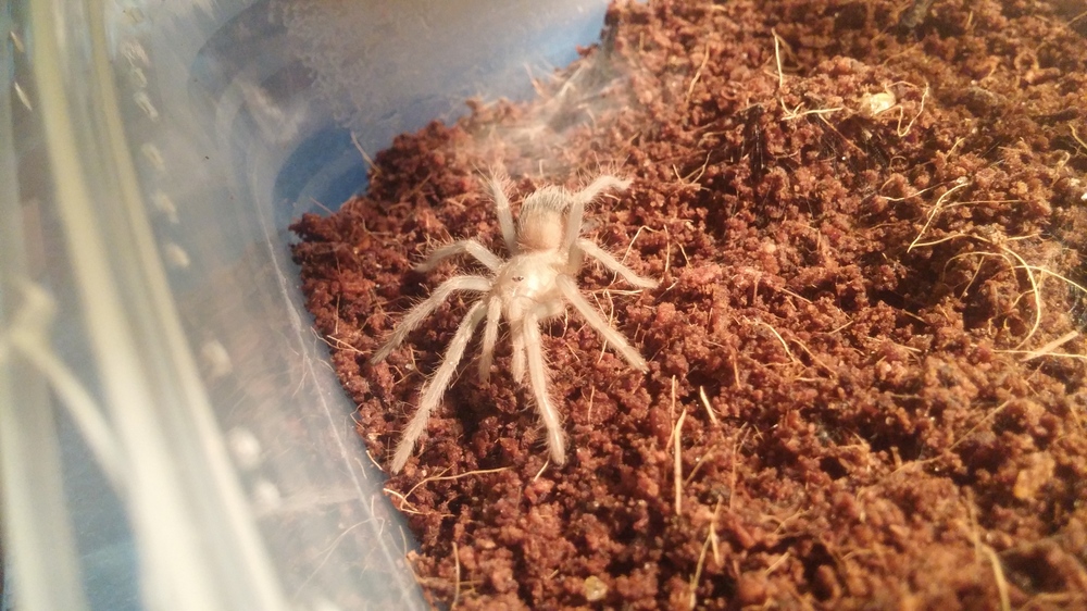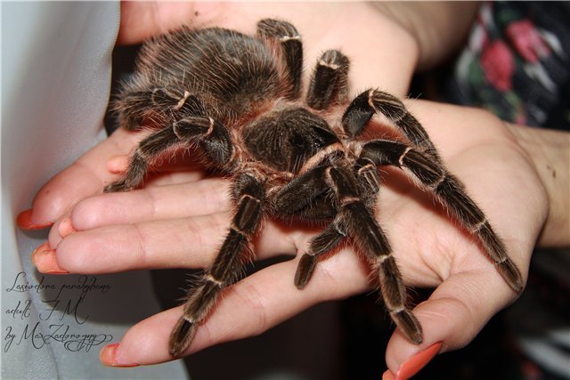 Паук еще маленький 6 линька,название Lasiodora parahybana. Выбирал я его рандомно, потому как паук у меня первый и ехал я за определенным пауком, но на месте оказалось что не осталось и я взял первого попавшегося). Приехав домой понял что это не то вообще,что я хотел)) Паук очень активный и достигает рекордных размеров где-то 25-30 см в размахе лап. Тараканов кормлю рыбьим кормом и овощами,фруктами типо яблок. Фото из интернета