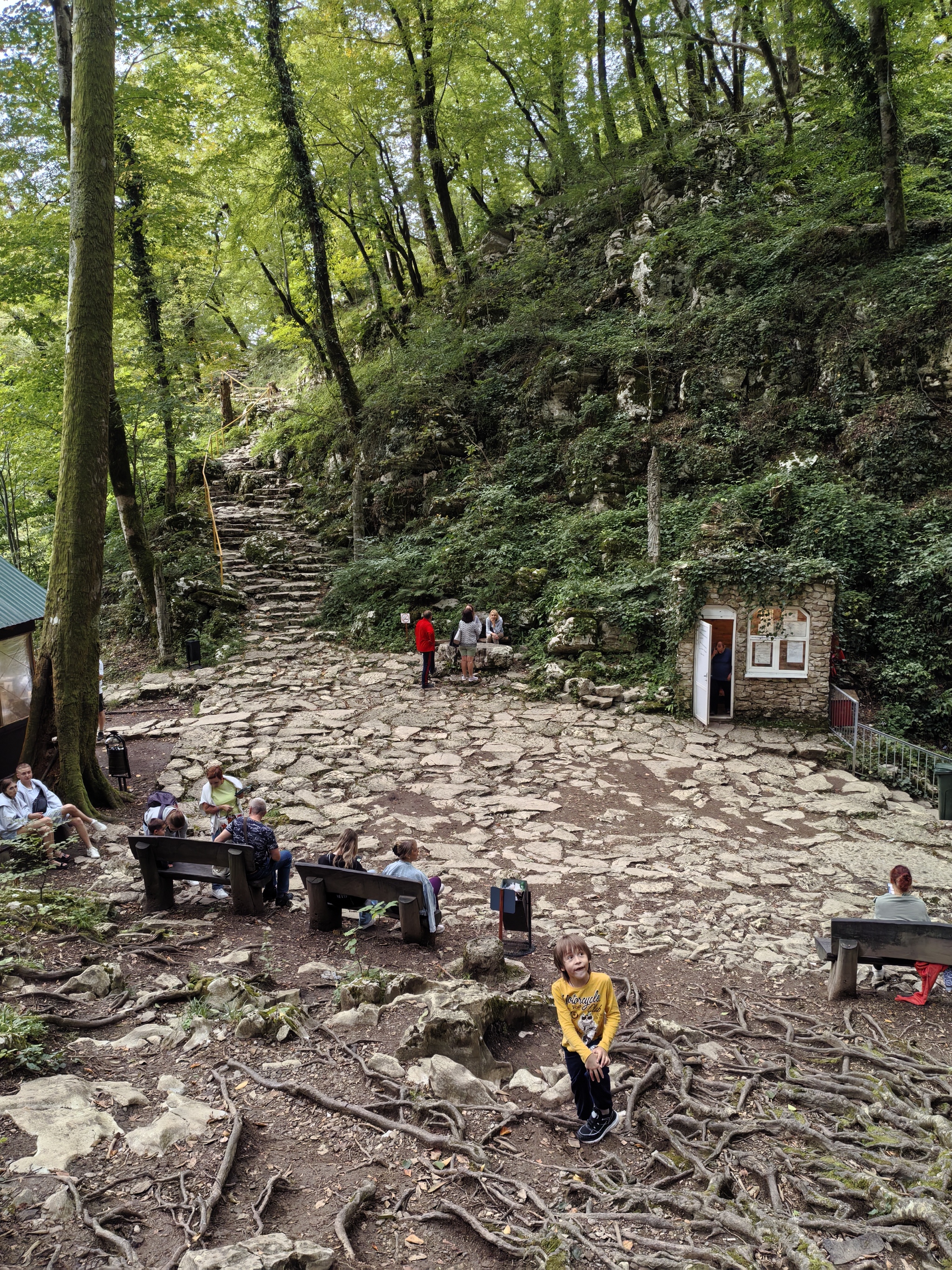 А еще у входа в пещеру стоит фонтанчик и деревянные идолы. Ну так для антуража. Одна барышня обнимала их и уверяла своего спутника, что они настоящие, древние, аутентичные. Он так и не смог объяснить ей, что это бутафория.