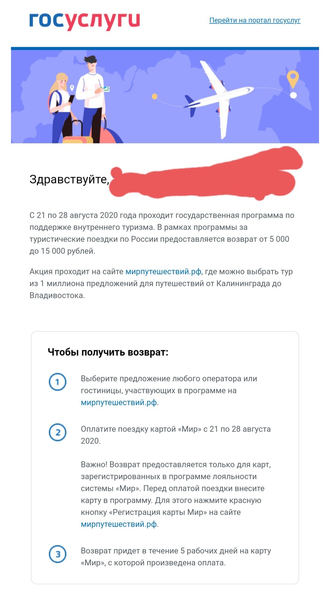 agares449 5 лет назад Туризм Пришло интересное письмо на электронную почту.Самое время для туризма во время короновируса, Россия щедрая душа. [моё] Госуслуги Туризм Ещё 0