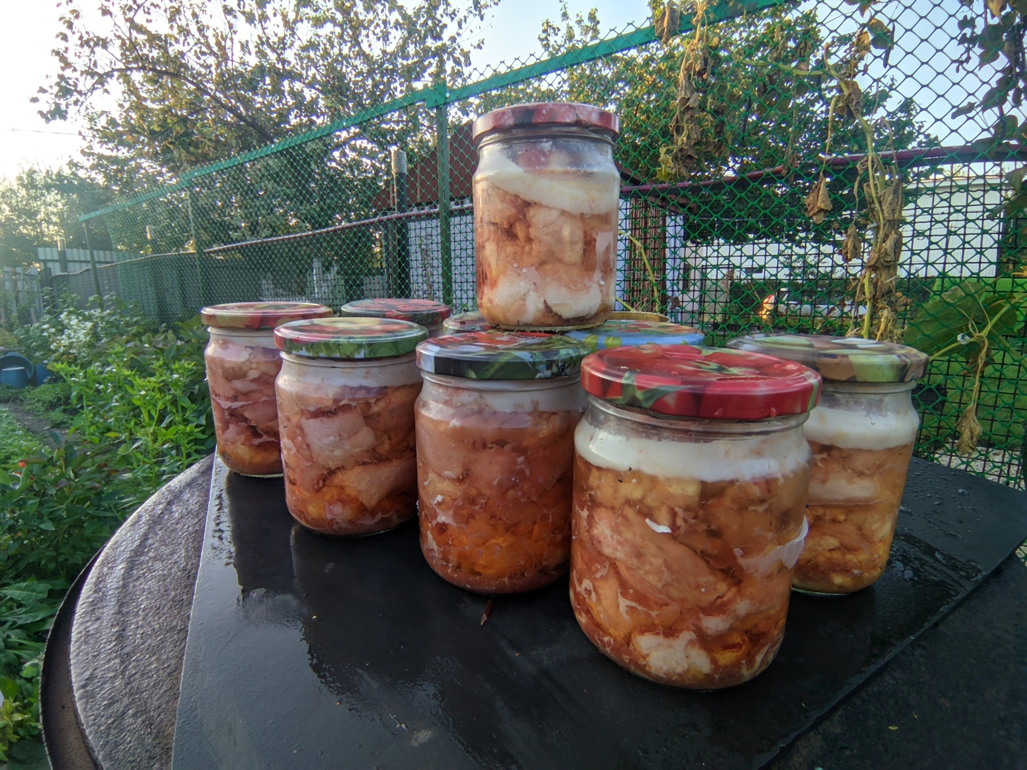 11 банок получилось, две довариваются с консервами + на шашлык ещё кило-полтора осталось + шкура и кости собакам)