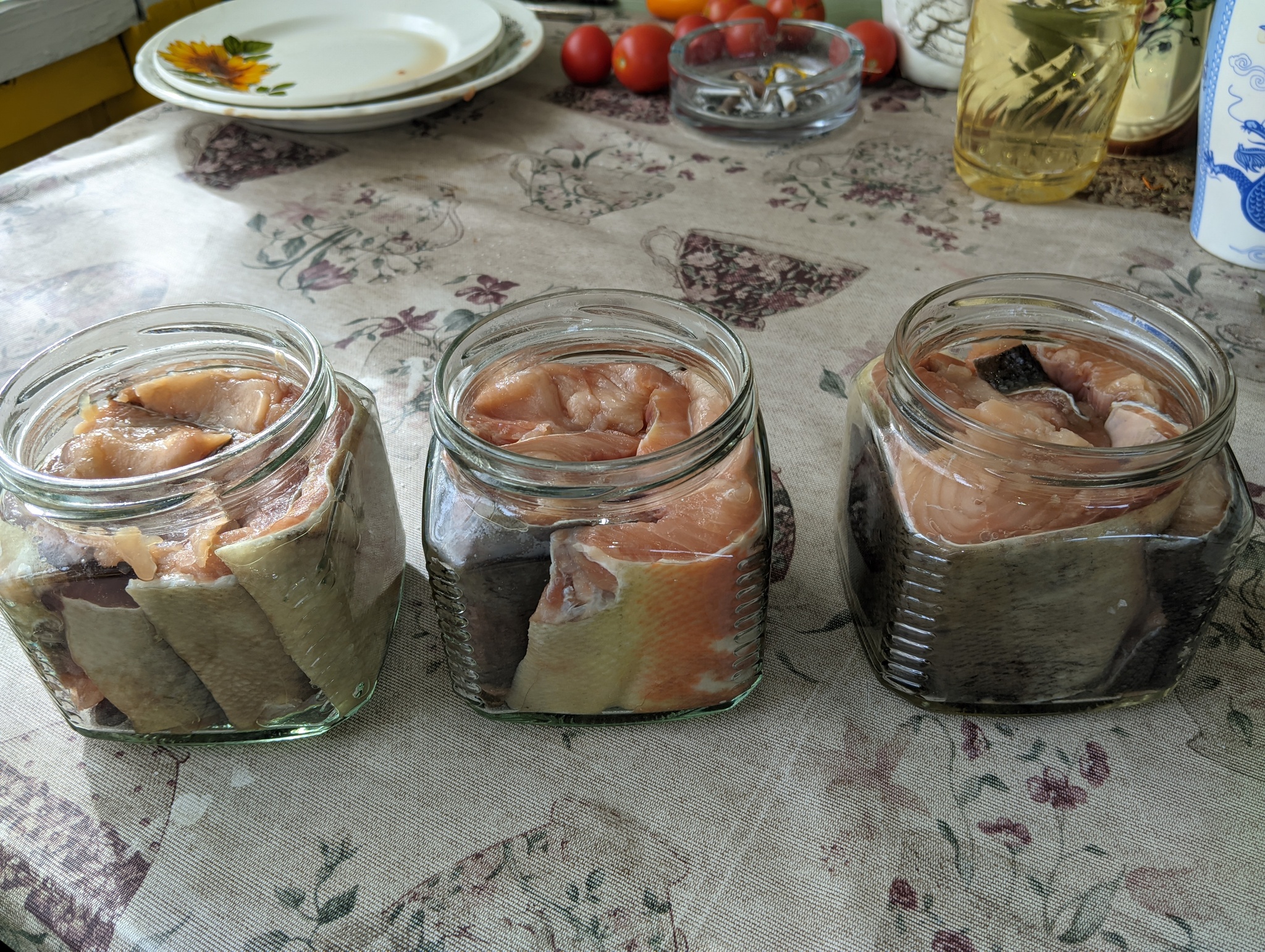 Сейчас варится консервы 8 баночек скумбрии и 3 кеты