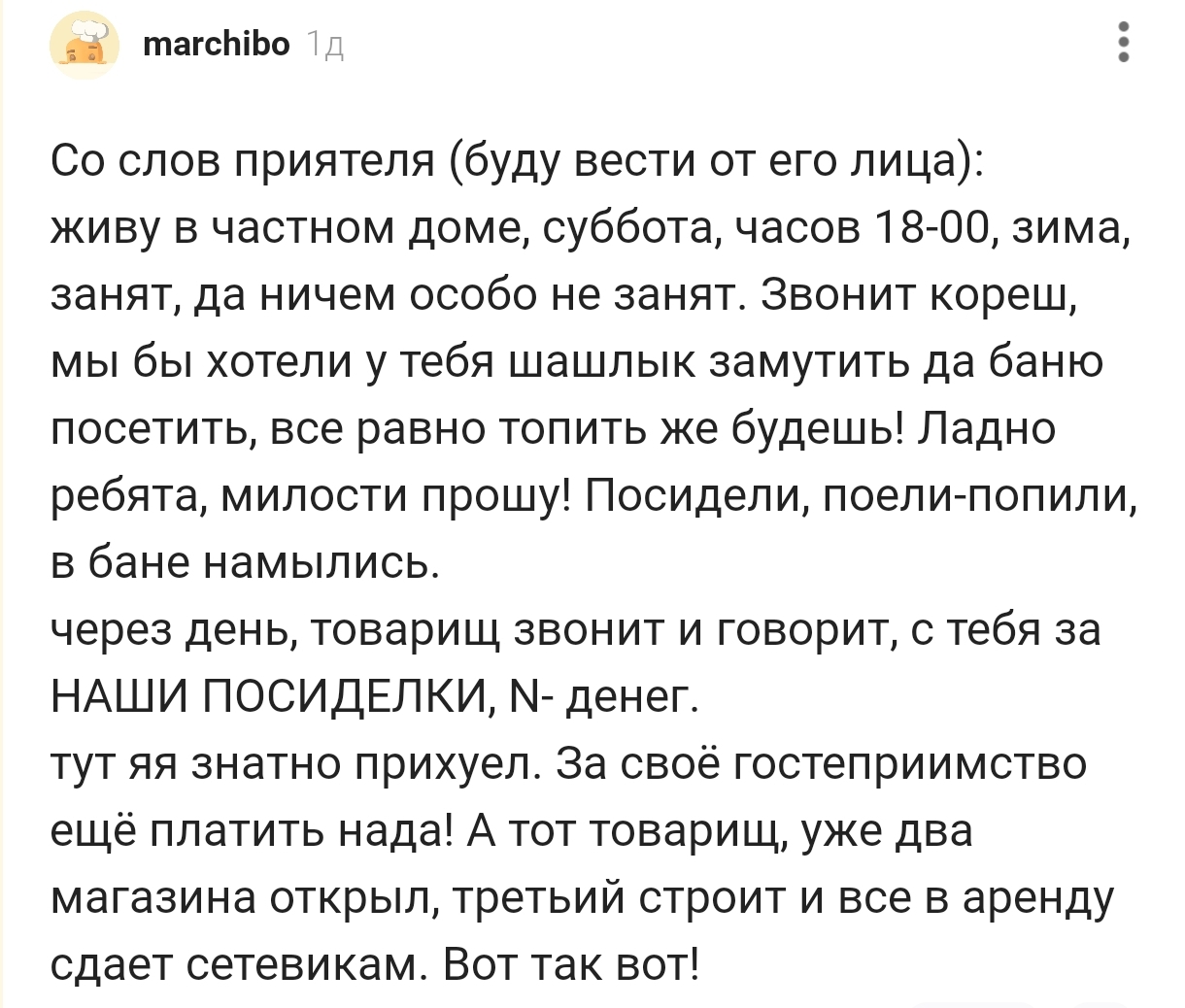Тут я знатно обалдел. За своё же гостеприимство ещё платить надо !!!