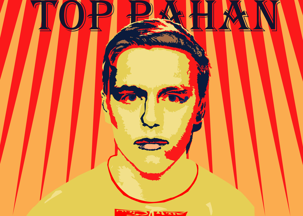За старания +! Скажу тебе по секрету, трафареты для узоров называются паттерны, кривые называются Кривые безье или в простонародье Шейпы, и все хорошо получилось, кроме этой уродской надписи, без обид, лучше ее или удали, или уменьши портрет. Портрет занимает 90% места на холсте, в то время как текст прижат к потолку и довольствуется 10%.