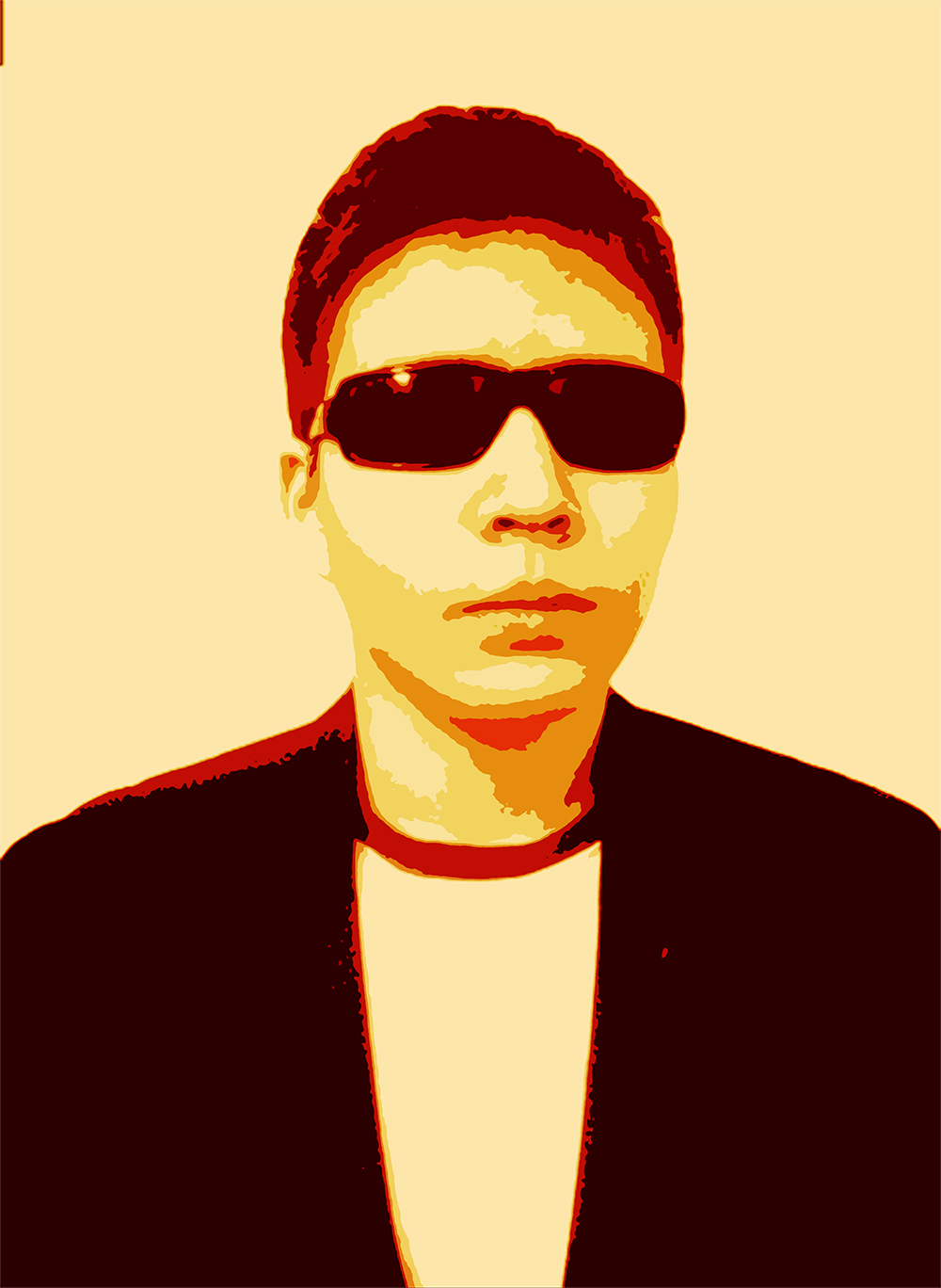 У нас изначально идёт копия не постера НОРЕ, а других. Синий тут лишний, ведь цвета должны быть от тёмного к светлому, а у тебя в конце опять тёмный появляется. И красный на лице - лишний. В последний раз когда ты выкладывал свой результат, было лучше намного.