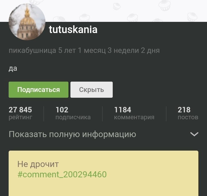 В профиле написано, что за мультиакк. И это значит лишь одно: появился новый аккаунт после КарлыВиты, а значит Танька где-то среди нас!)