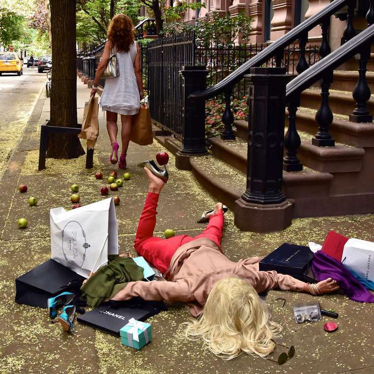 Она собралась с последними силами и упëршись обеими руками в спину рыжей стервы с силой толкнула ту в сторону как раз открывшихся дверей… Обе покатились вниз – на тротуар и сбили с ног, подошедшую к остановке на посадку, такую же рыжую дачницу: конопатую тëтку около сорока – весьма размытых форм и такого же размытого лица.
