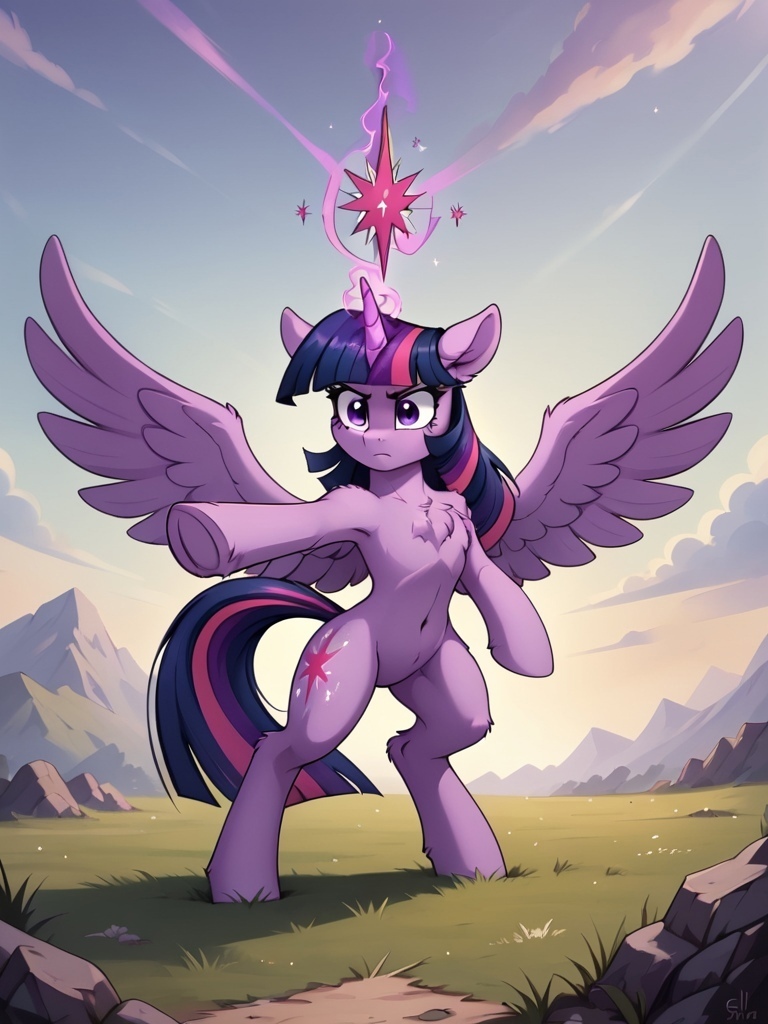 В общем, как-то раз сгенерировал я картинку с Твайлайт, и она получилась с весьма забавной позой, хотя пытался с сделать совсем не это. И подумал я, а почему бы не сделать самому что-то такое? И вот зашёл я в криту...