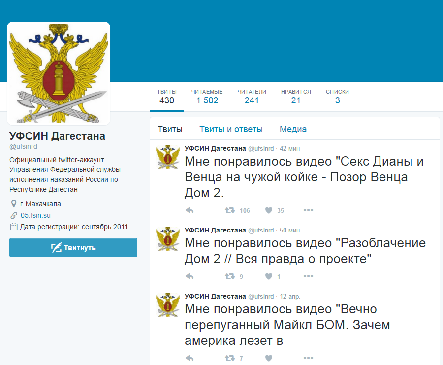 Твиттер УФСИН Дагестана