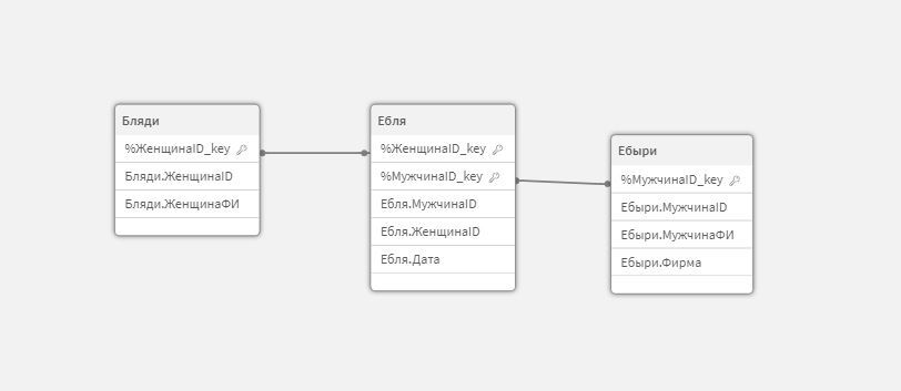 В этой таблице избыточная информация, потому что имена ебырей и названия фирм в которых они работают зависят от ключа ID, такая же хуйня и с именами блядей.