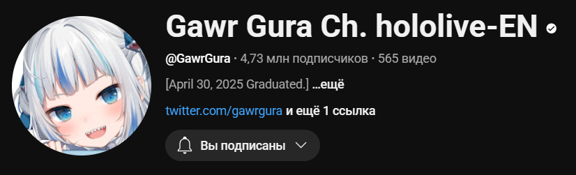 самый известный в ру сегменте витубер? хммм наверное Гура, если мы имеем ввиду известного в общем, а не именно ру витубера.