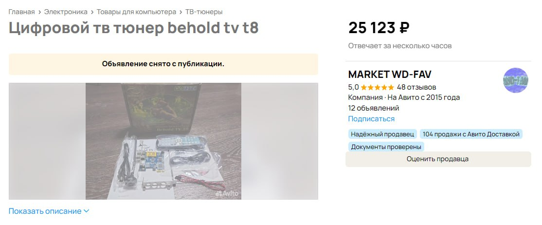 ТВ-тюнеры Behold TV A8/H8/T8 и их "поклонники" с Авито