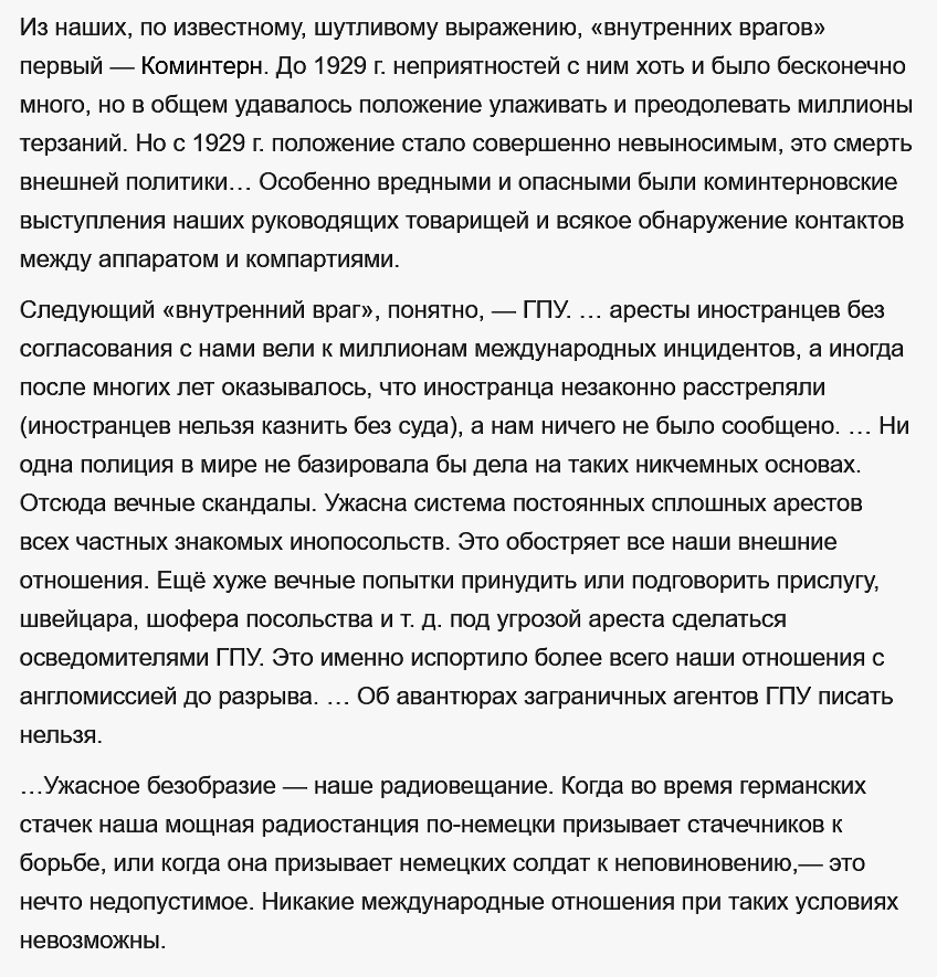29 MirVcegda23 Лига историков Тяжело быть наркомом иностранных дел в революционной стране 9 месяцев назад Из записок Народного комиссара иностранных дел СССР Чичерина: Источник Полный материал с сайта МИД:https://idd.mid.ru/informational_materials/neizvestnyy-chich... https://idd.mid.ru/informational_materials/neizvestnyy-chich... Политика Скриншот Картинка с текстом СССР История России Гпу 1 1 Ещё 0