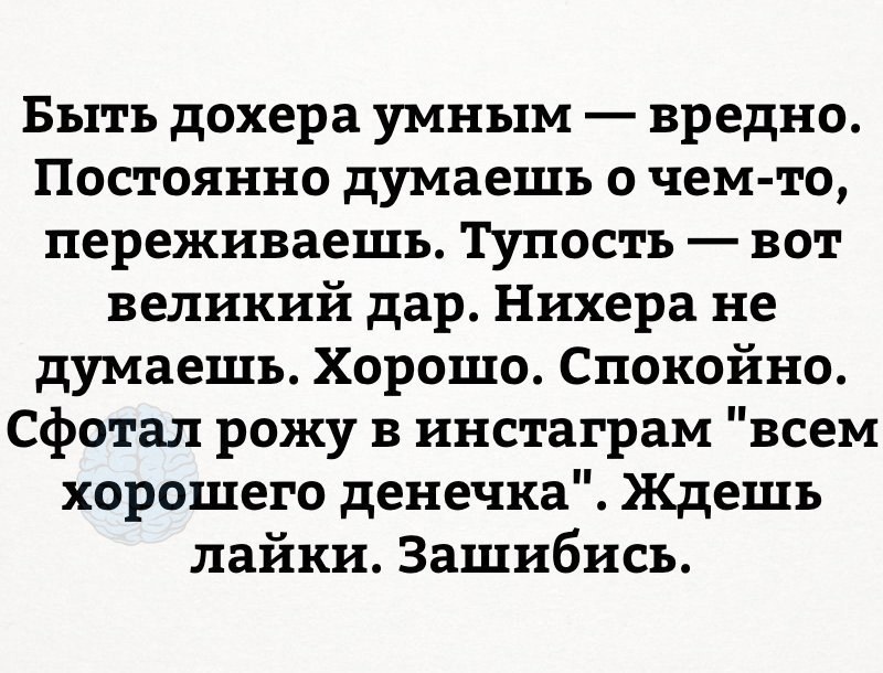 Раньше страдали тупые. Теперь страдают умные. Страданий стало меньше, потому что умных становится все меньше и меньше.»