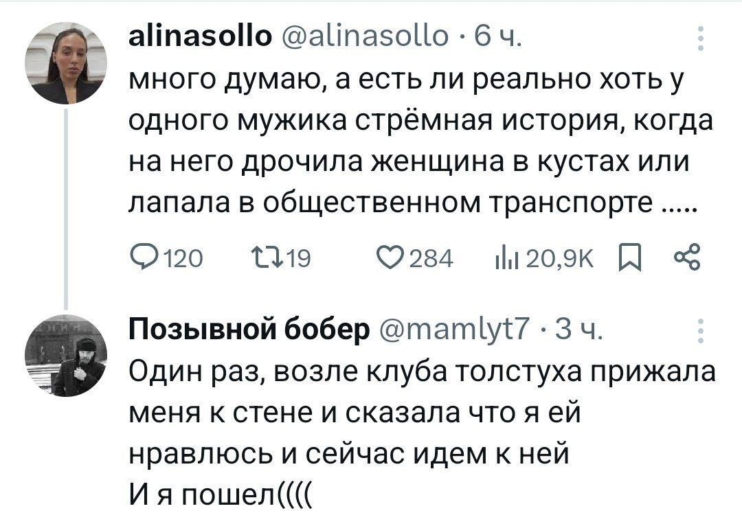 3973 SV08081962 Юмор для всех и каждого Юмор Тяжёлый случай2 1 год назад Источник: memento Черный юмор Ирония Скриншот Мужчины и женщины Сексуальные домогательства Комментарии X (Twitter) 131 29 7 4 2 Ещё 0