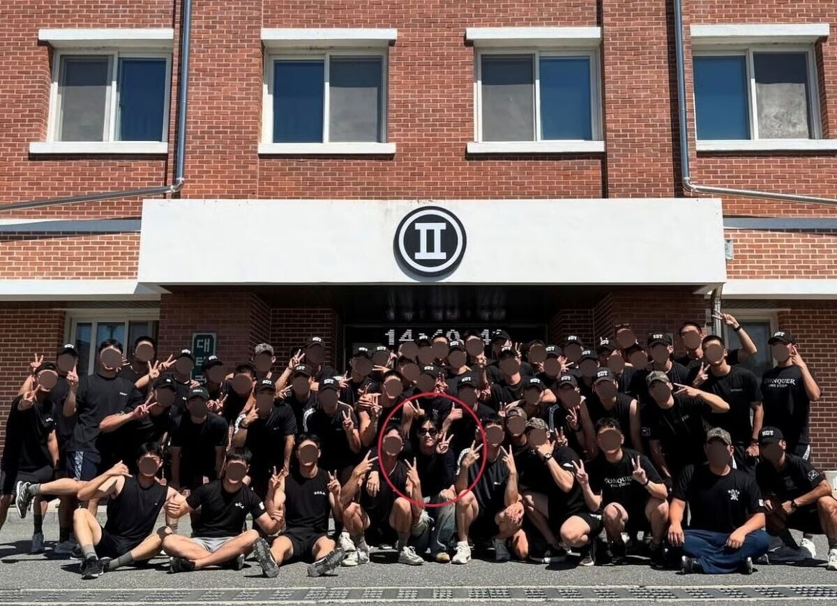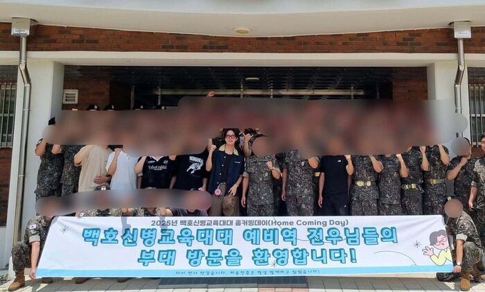На баннере написано "Мы приветствуем возвращение резервистов учебного батальона рекрутов Baekho".