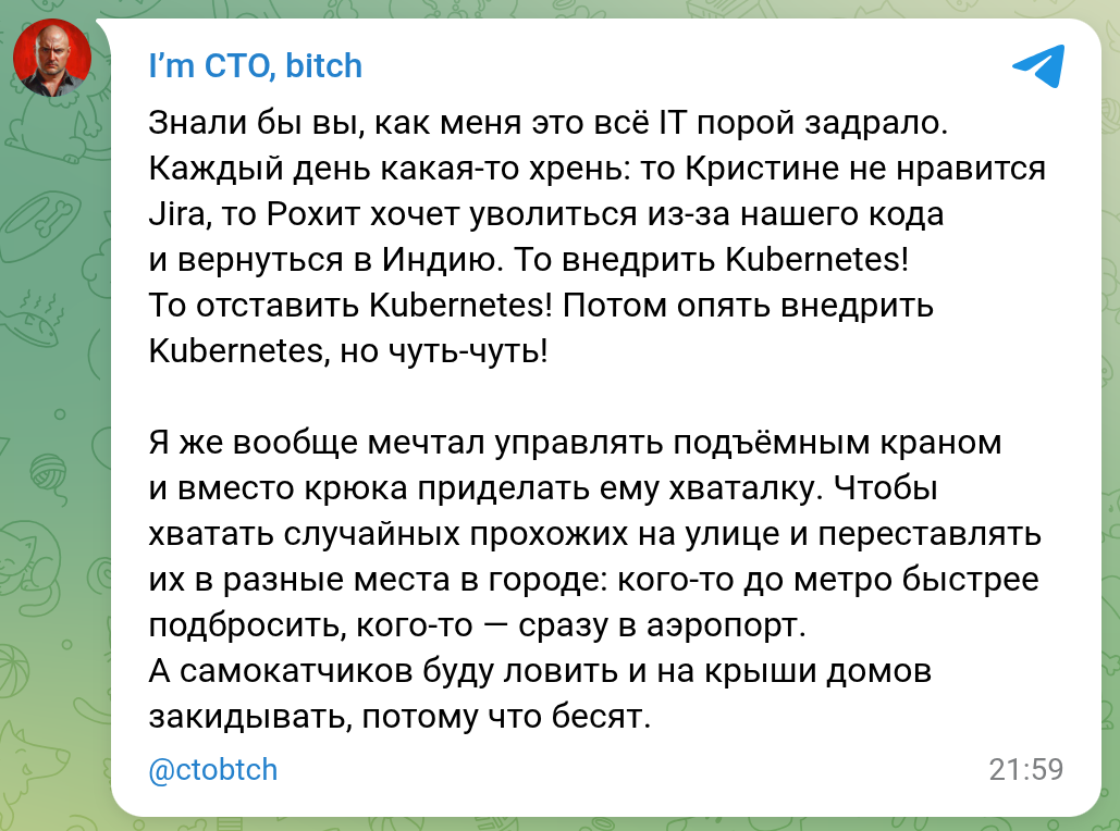 Если у тебя были мысли или мечты стать техдиром, послушай батю, почему тебе это не нужно. Если не испугает — окей, тогда иди дальше к цели, но уже без розовых очков.