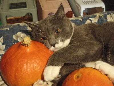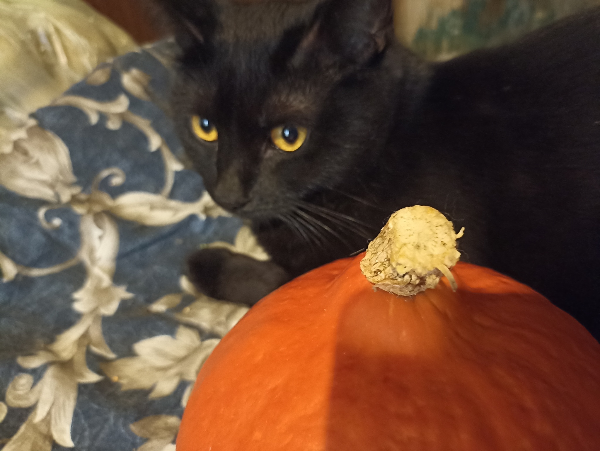 Патриотично хэллоуиним с котом. Выращенная на даче тыква дождалась своего часа =D