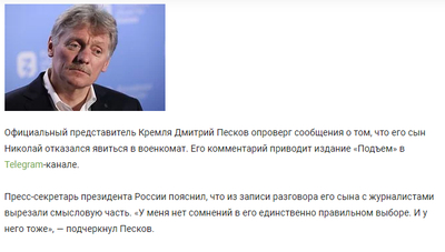 Всюду ложь, от всех властьимущих. Что уже говорить о проплаченных пропагандонах, если Песков на честном глазу заявляет, что мобилизации не будет, а его сын не говорил, что не пойдёт в военкомат.