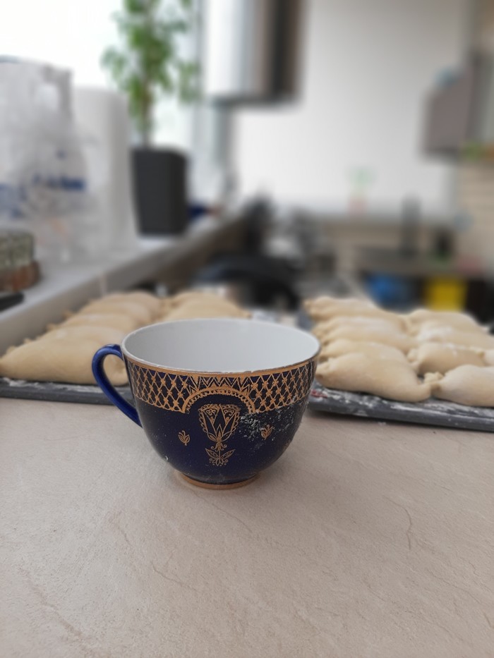 Ещё раз провожу ревизию по кухне и понимаю, что я же могу приготовить вареники! Пока отваривалась картошка, замесил тесто, раскатал и тут, бац, проблема - чем нарезать кругляши не знаю. У стопок и бокалов маленький диаметр, у кружек слишком толстые края. И тут взгляд падает на сервиз - синяя чайная чашечка идеально подходит для нарезки! Как раз картофель отварился, сыпанул туда творога и давай превращать в густое пюре. И пошел процесс! Только я долепил последний вареник, как пришли мои девочки. Тёща распинается, какой я молодец и хозяйственный и тд. Супруга извинилась, что не предупредила о карточке банковской. И сообщила, что маме они купили пуховик. Мама - это святое. Говорю, что через 10 минут к столу всех приглашаю, как раз варить вареники собираюсь. Но тут тёща меняется в лице - милая улыбка превращается в звериный оскал, а глаза наполняются кровью. Смотрю, супруга тоже меняется в лице. Искренне не понимаю в чем дело!