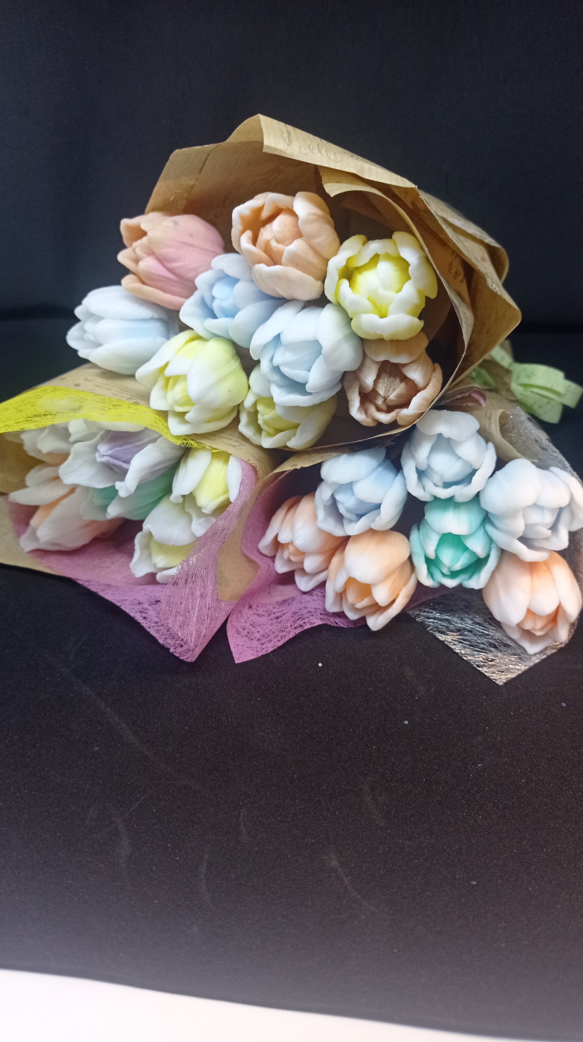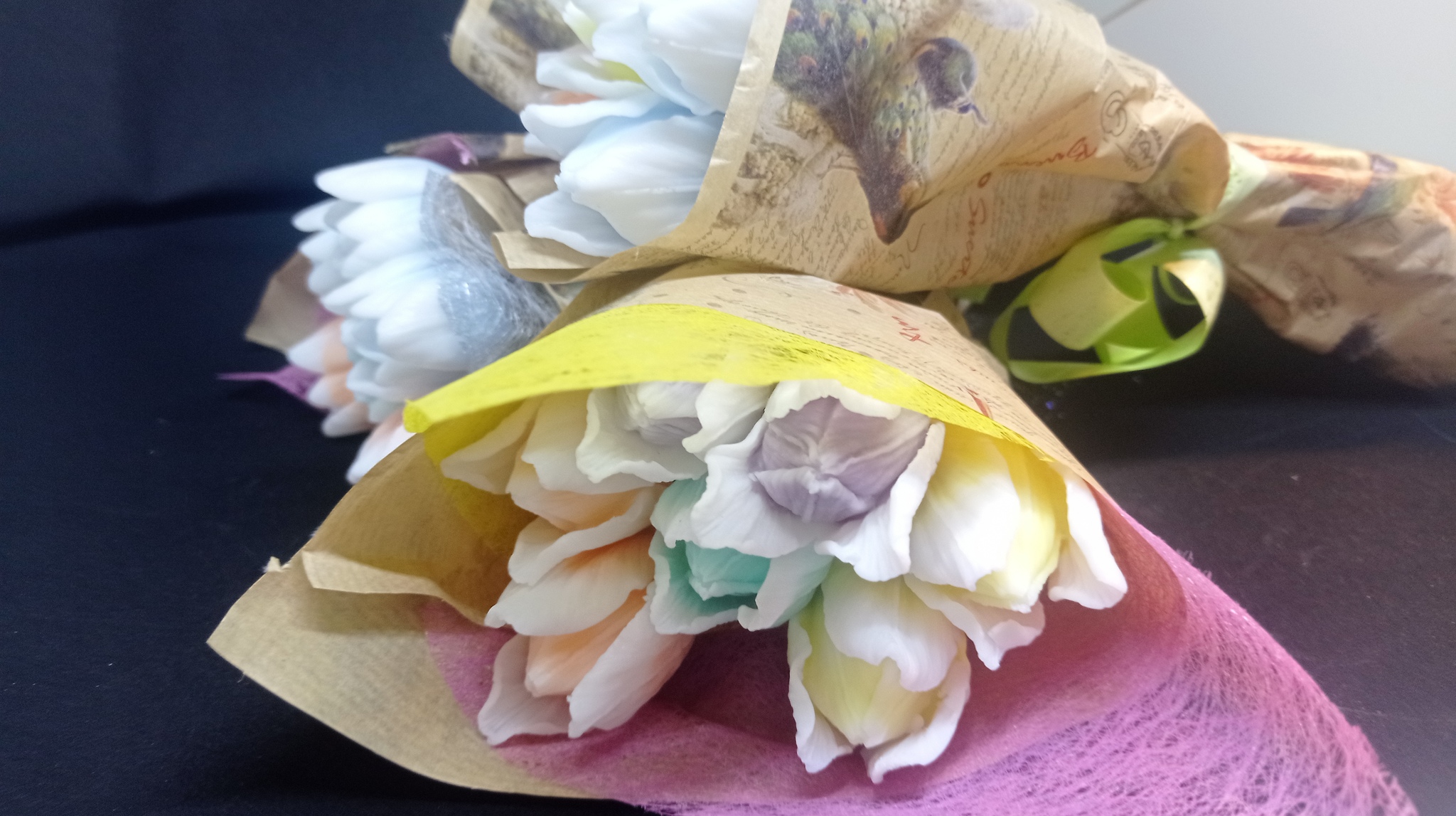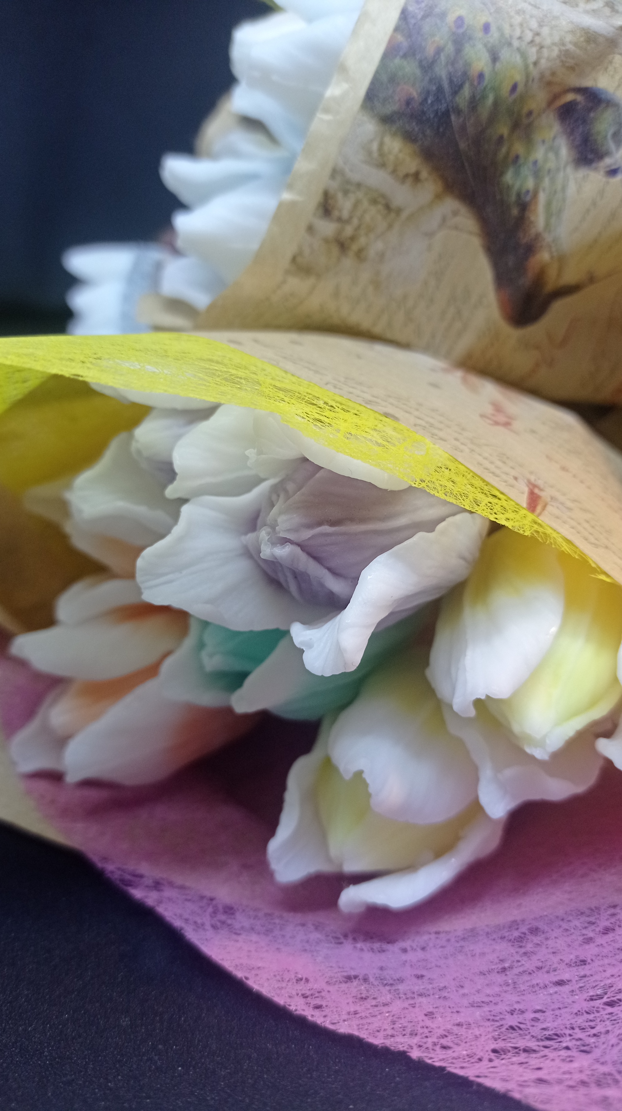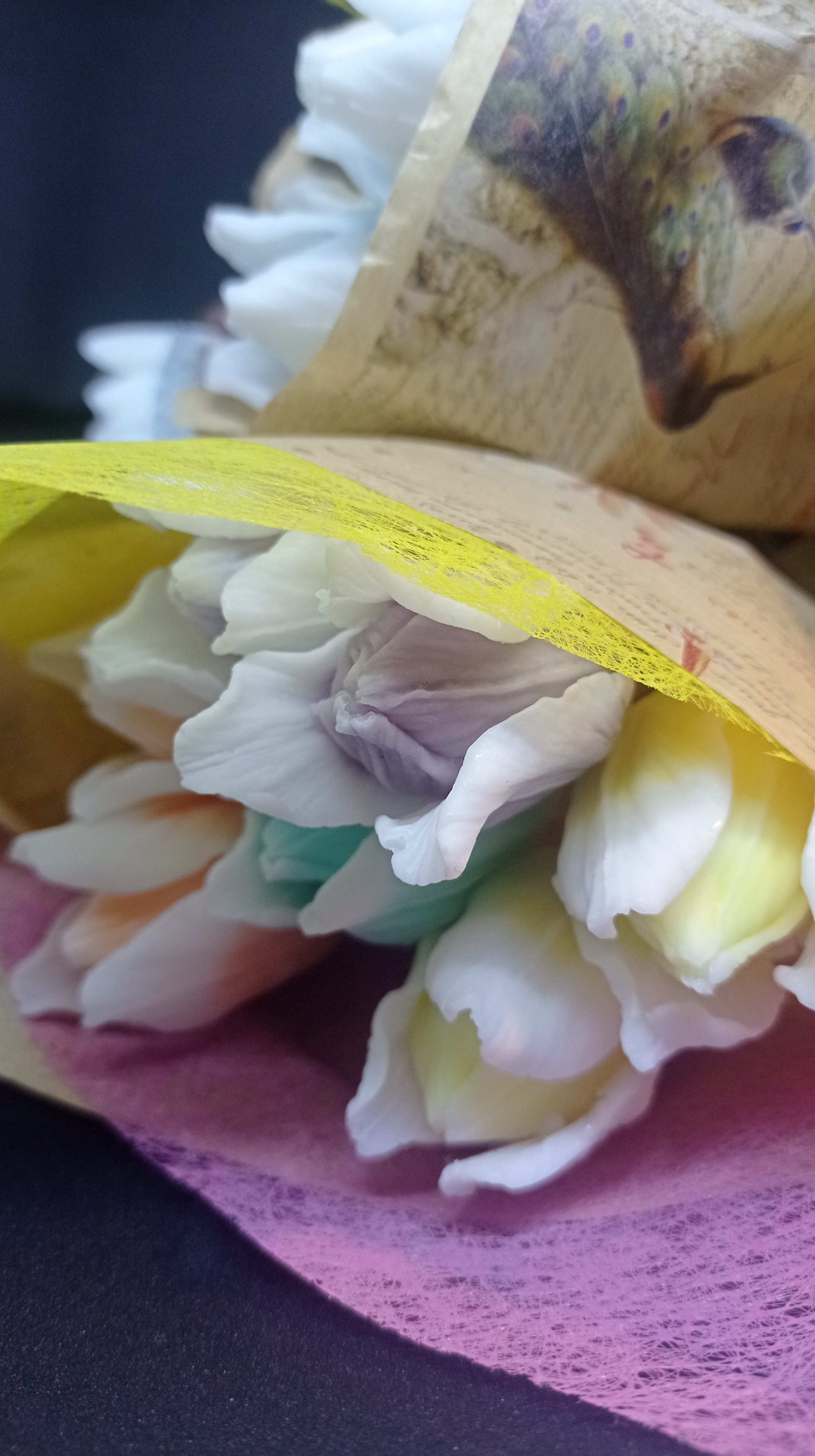 Никогда не собирала букеты из мыла, и вот решила попробовать себя в мыльной флористике)))