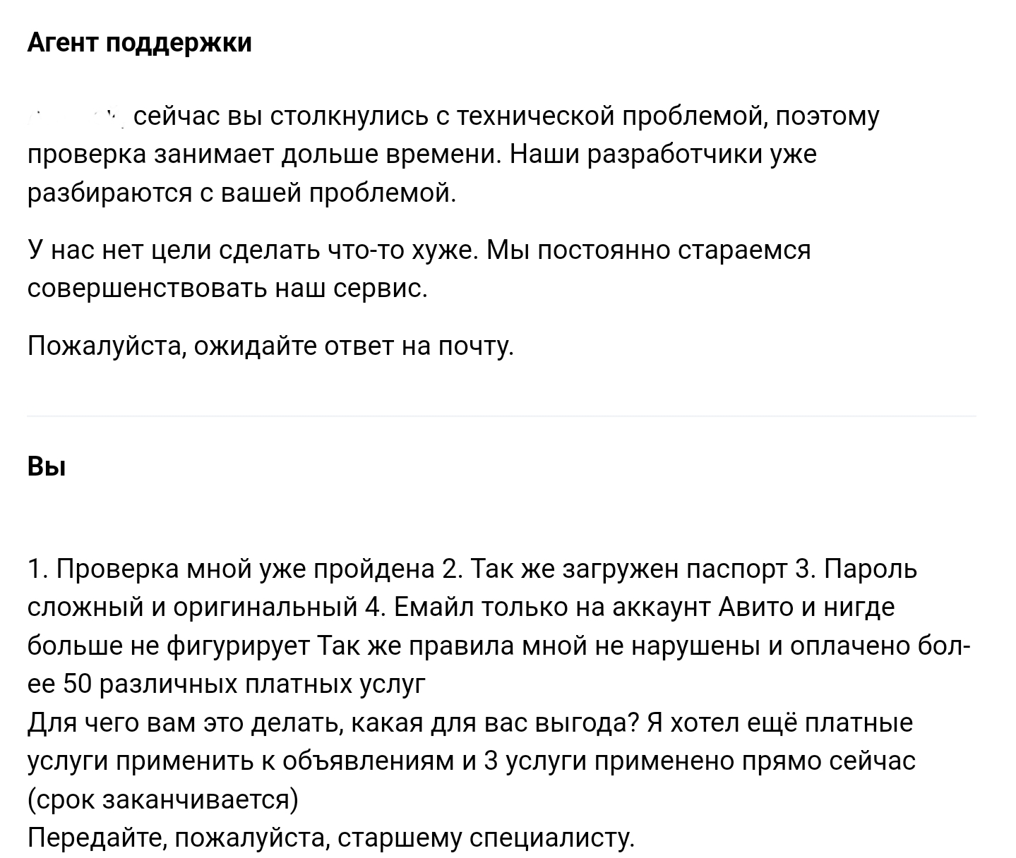На это мне в Авито ответили "ой да, у вас все это есть, тогда ждите, мы во всем разберемся"..и..